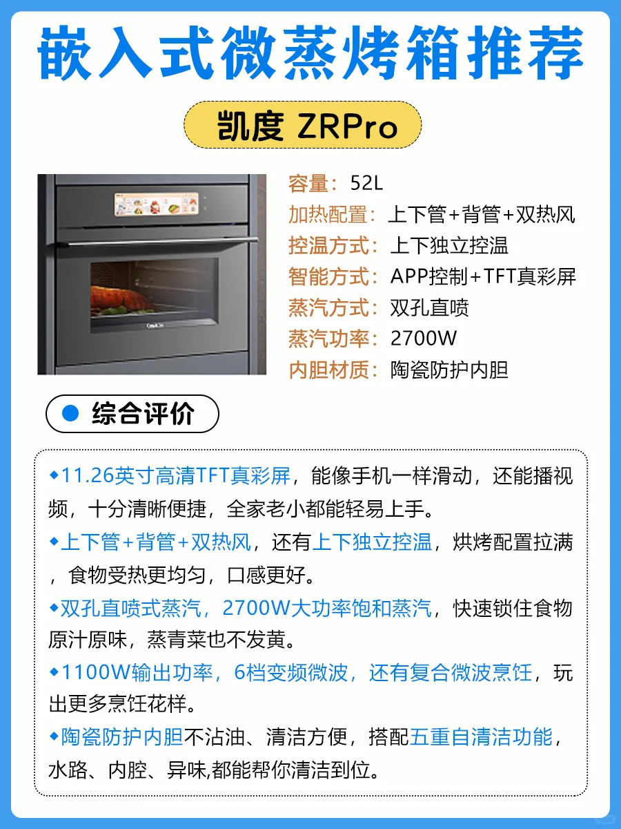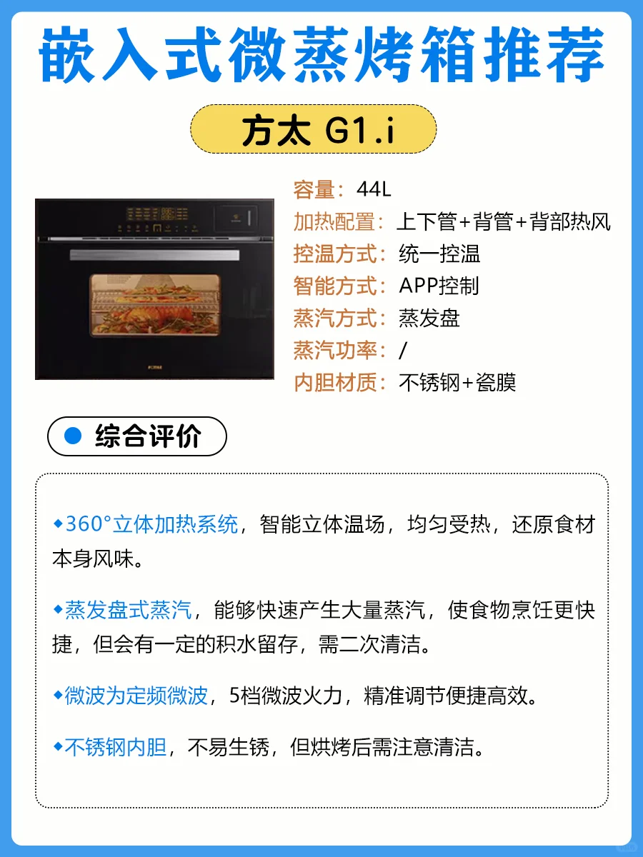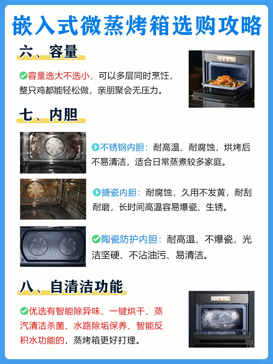 ✅优选有智能除异味、一键烘干、蒸汽清洁杀菌、水路除垢保养、智能反积水功能的,蒸烤箱更好打理。