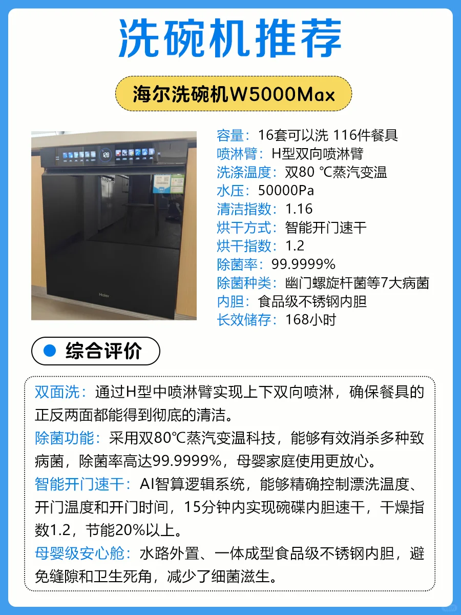 ✨综合看下来,海尔洗碗机W5000Max和海尔油烟机C50参数和功能各方面都很不错,双十一真的可以冲~
