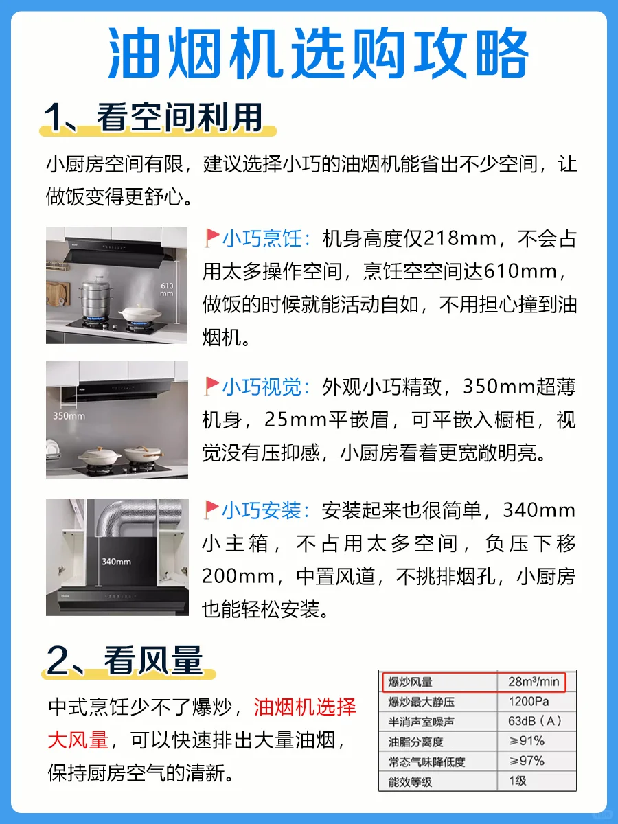 ✅中式烹饪少不了爆炒,油烟机选择大风量。