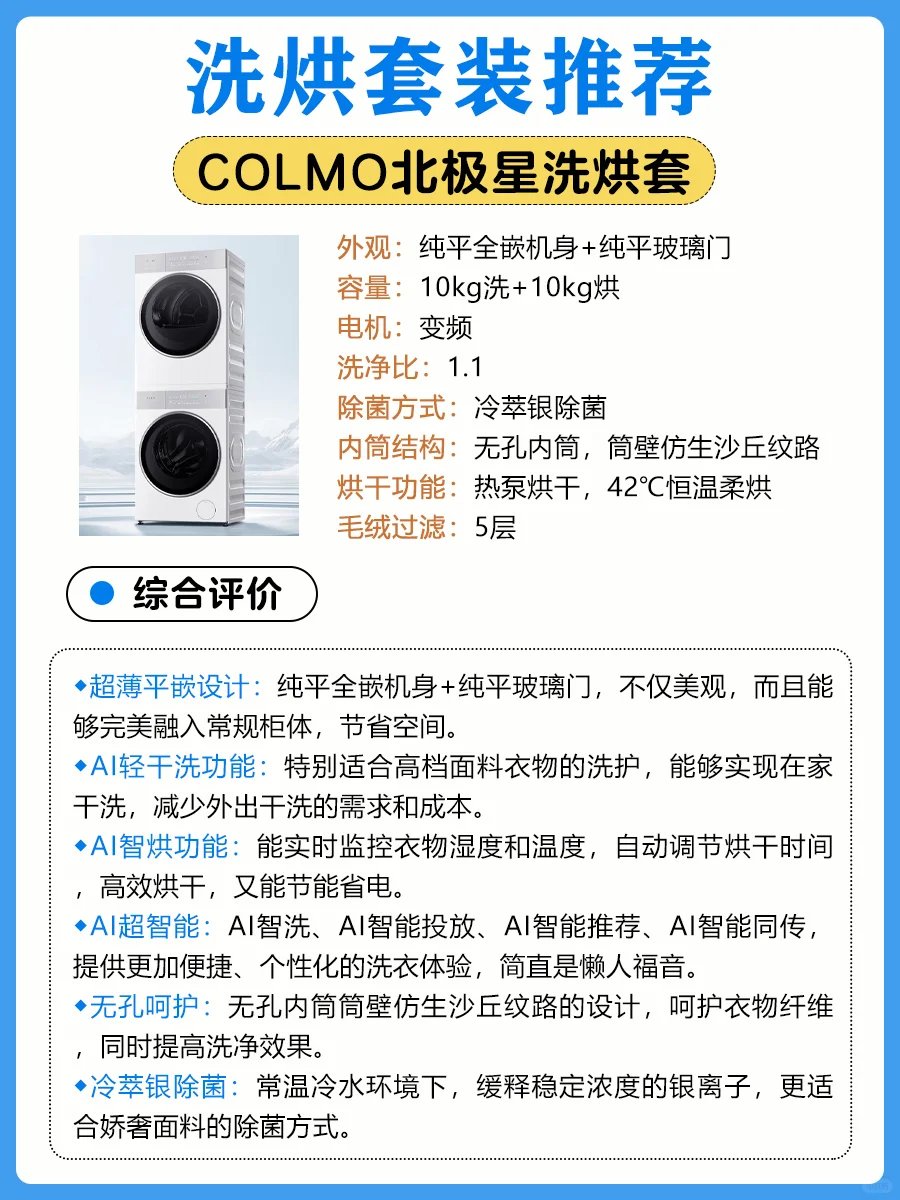 👉🏻对比了3款热门洗烘套装,综合下来还是COLMO北极星洗烘套更胜一筹,洗烘功能齐全,而且智能省心,主要是在衣物护理方面也更专业~