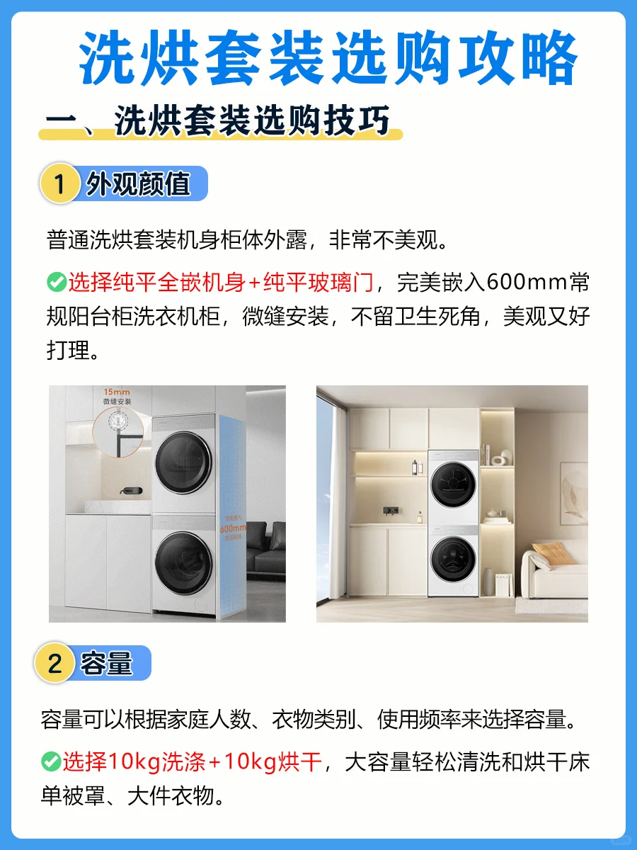 姐妹们,平常喜欢买衣服👗,衣服种类又多的,快看看这个洗烘套装!节省空间又美观,清洗西装衬衫、宝宝衣物、真丝睡衣、娇贵面料衣物都轻松拿捏,主打不伤衣的娇奢洗护,快看怎么选购吧!