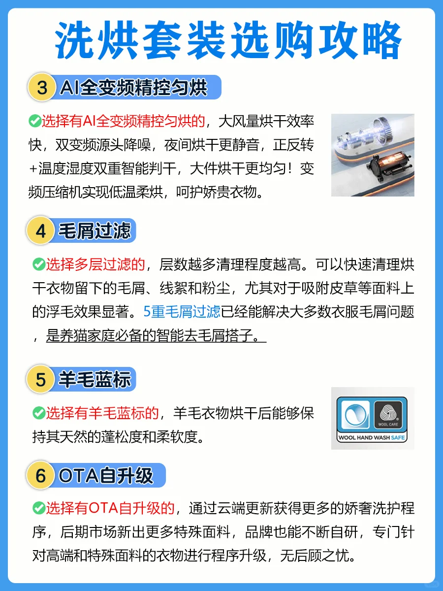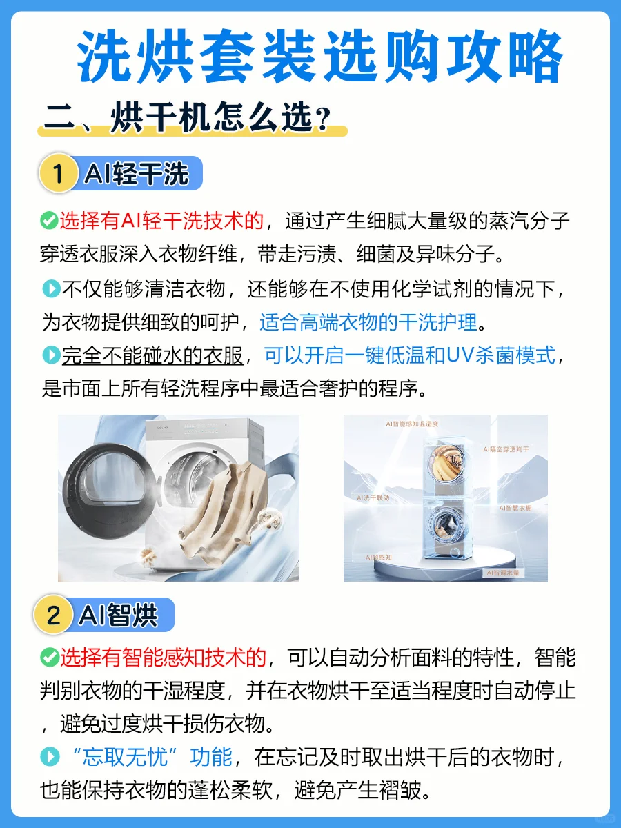 ✅选有AI全变频精控匀烘的,大风量烘干效率快,更静音,控温精准,烘得均匀衣服印花不变色