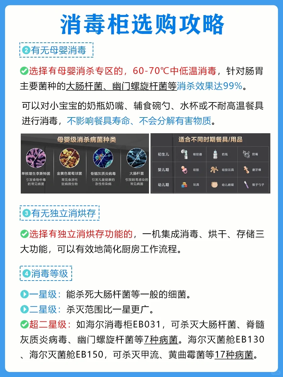 ✅选择有母婴消杀专区的,60-70℃中低温消毒,不影响餐具寿命、不会分解有害物质,更适合母婴用品安全消杀。