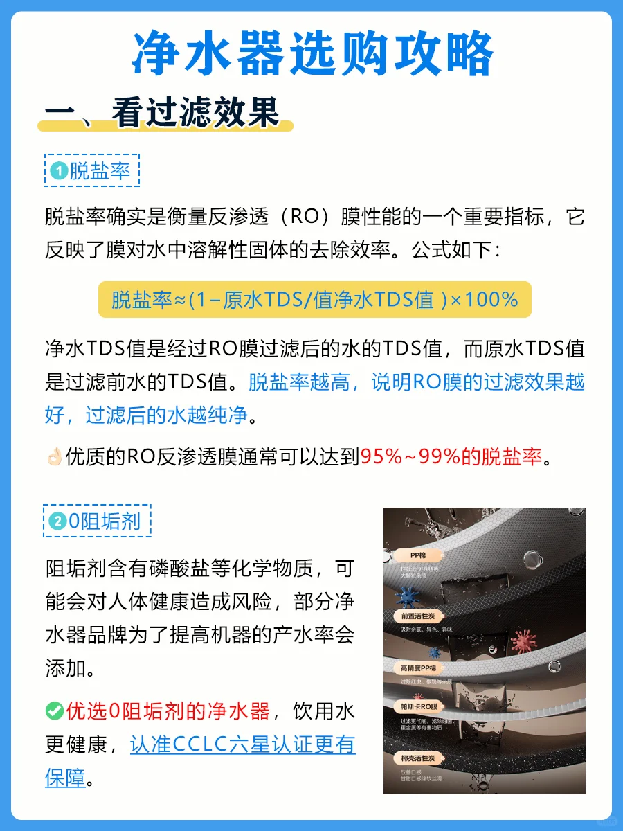✅优选0阻垢剂的净水器,饮用水更健康,认准CCLC六星认证更有保障。