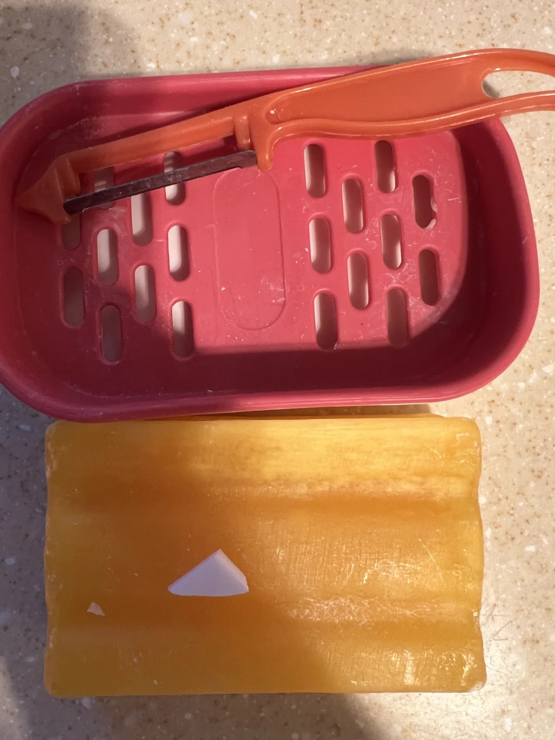 刚好手里有当内衣皂的增白皂,我先刮了图二那么多,感觉容量不够,索性全刮了,换了图三的新皂。