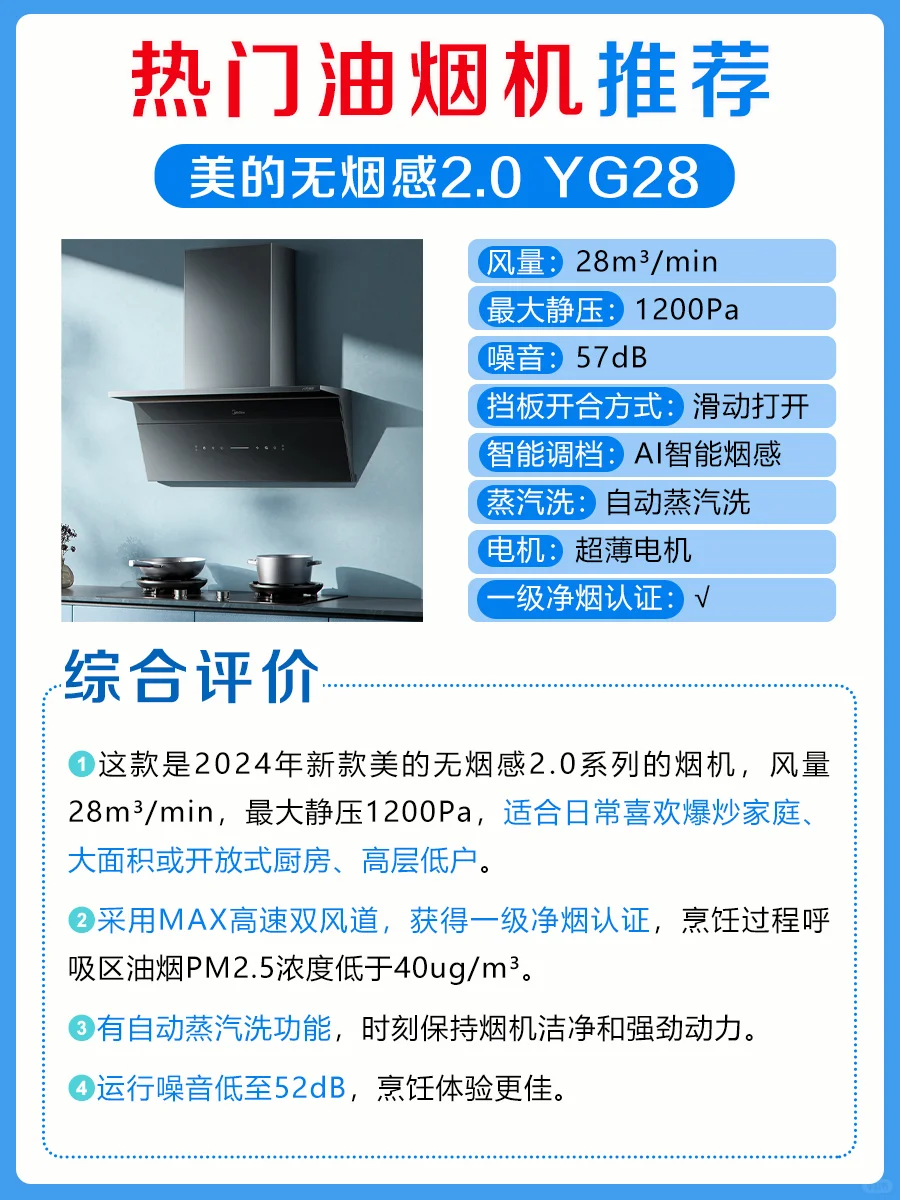 👍🏻美的无烟感烟机系列均获得了行业权威“一级净烟”认证。
