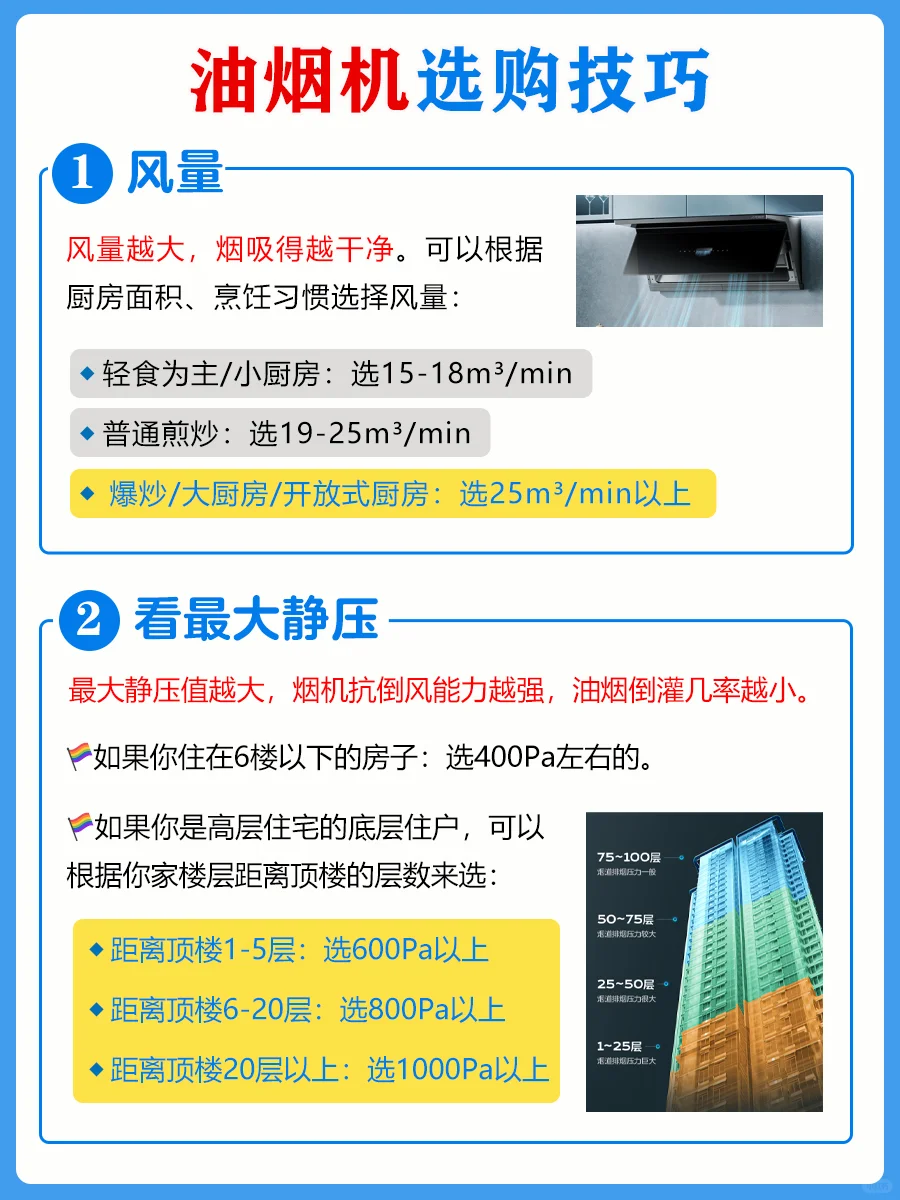 最大静压值越大,烟机抗倒风能力越强,油烟倒灌几率越小。