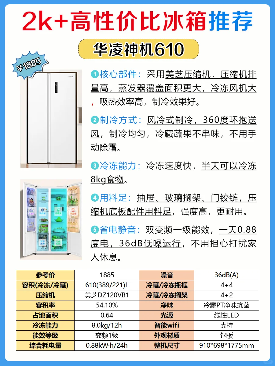 👉🏻华凌是美的集团旗下品牌,沿用美的技术和售后服务,质量过硬。