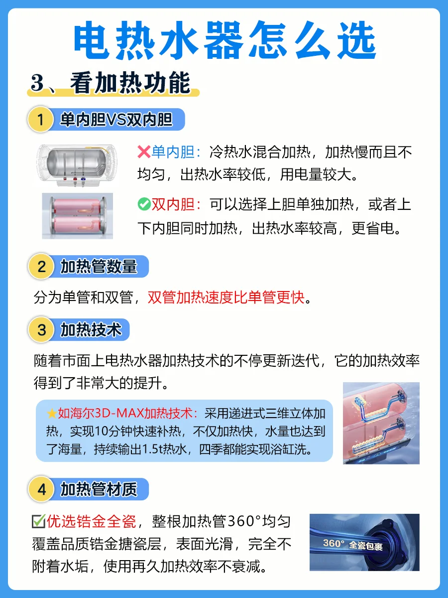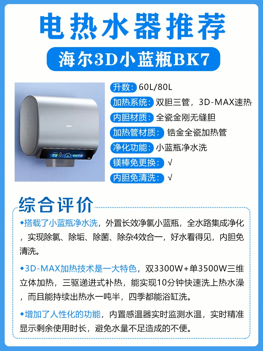 ✅选海尔3D-MAX加热技术:采用递进式三维立体加热,实现10分钟快速补热,不仅加热快水量也达到了海量,持续输出1.5t热水,四季都能实现浴缸洗。