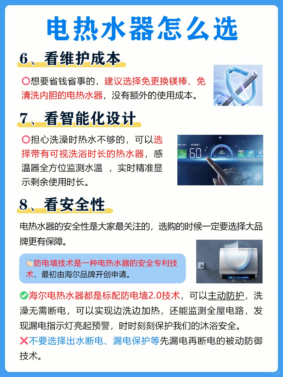 👏🏻海尔电热水器都是标配防电墙2.0技术,可以主动防护,洗澡无需断电,可以实现边洗边加热,还能监测全屋电路,发现漏电指示灯亮起预警。