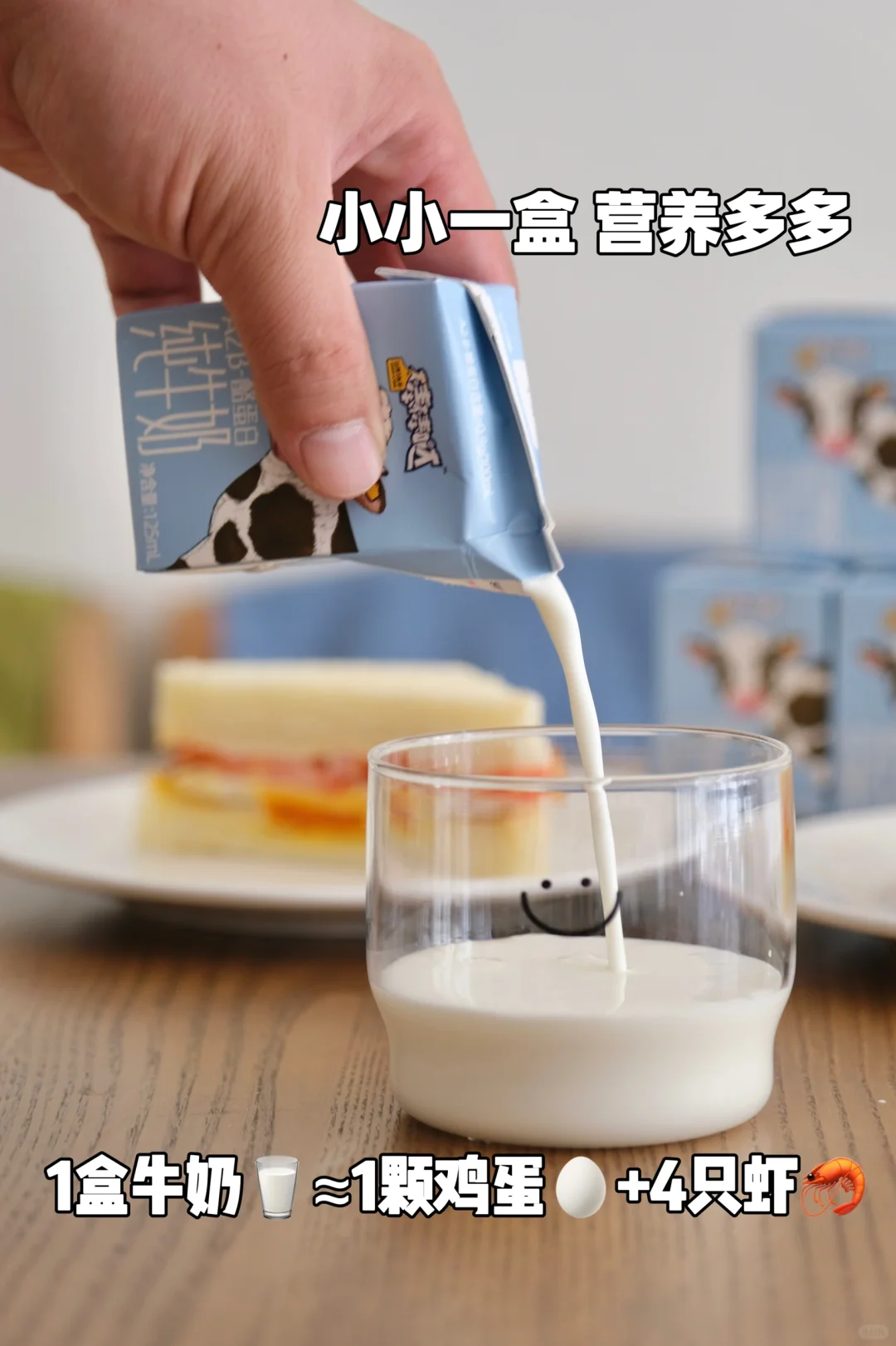 1⃣盒牛奶相当于1⃣个鸡蛋+4⃣只虾的营养,