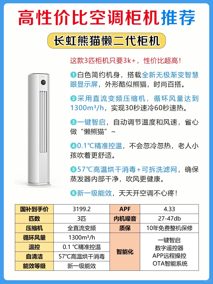 ✨长虹熊猫懒二代柜机,3匹柜机只要3k+,无论是颜值还是功能配置都拉满!