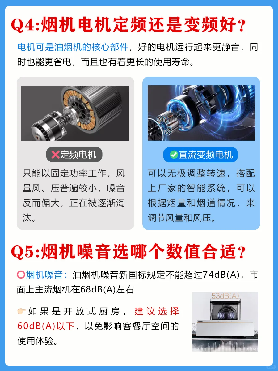 开放式厨房建议选择60dB(A)以下,以免影响客餐厅空间的使用体验