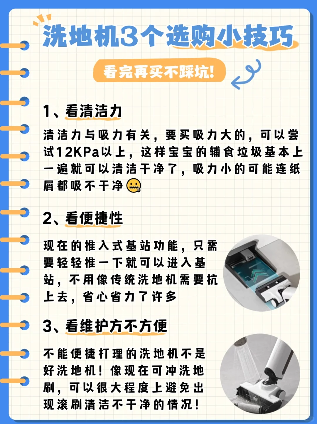 🙇真的,各位宝子们,听句劝吧❗ 不管啥时候买洗地机(尤其是双十一洗地机)都别跟风买,动不动就是漏水、污水箱发臭问题,买家用洗地机之前一定要好好做功课✊ 🌟如果你想双十一趁着国补搞台洗地机,那今天我就把这份我整理好的2024年洗地机推荐家用性价比高选购指南分享给你们~ ✅看清洁力 咱买洗地机清洁力是首选项,比如可以做到前左右三侧清洁,让污渍无所遁形的3贴边功能就是不错的选择 ✅看便捷性 有了清洁力,那是否能便捷使用也是一个重要因素。像现在的推入式基站功能,只需要轻轻推一下就可以进入基站,不用像传统洗地机需要抗上去,省心省力了许多 ✅看维护便捷性 洗地机买回来是给家务减负的,不会自己给自己洗澡的洗地机不是好洗地机!比如像现在热门的密闭式烘干、电机可冲洗等功能,可以很大程度上避免出现拖布清洁不足的情况! 🌟知道大家都在纠结洗地机哪个牌子好、洗地机和扫地机器人怎么选这些问题,所以今天我给大家盘点了几款2024年家用高性价比洗地机推荐,有需要宝子可以考虑! 🟡【友望推入式洗地机】 型号:云朵 友望云朵这款洗地机不止可以躺平180°,让我比较吃惊的是:它可以直接推着洗地机进基站,再也不用像传统洗地机那样提哑铃式的搬上去,还有实时电解水,超级适合宝妈、对清洁有需求的家庭❗ 🟡【石头洗地机】 型号:A20 石头洗地机今年年初上过春晚,它引以为豪的点是180°躺平,但躺平这件事现在新品洗地机都可以做到了 🟡【添可洗地机】 型号:芙万Stretch 添可洗地机算是比较热门的选手了,它采用了热风烘干、3测沿边清洁的手段进行清洁,整体来说还是可以的 🟡【云鲸洗地机】 型号:S1 云鲸洗地机是当下超热门的款式,外观好看是它受到欢迎的重大因素,它同样也支持180°躺平 🟡【追觅洗地机】 型号:H20Ultra 追觅洗地机这款洗地机,180°躺平不在话下,黑色外观尽显高傲气质,清污水箱也比较大 ❤💛💚💙💜
