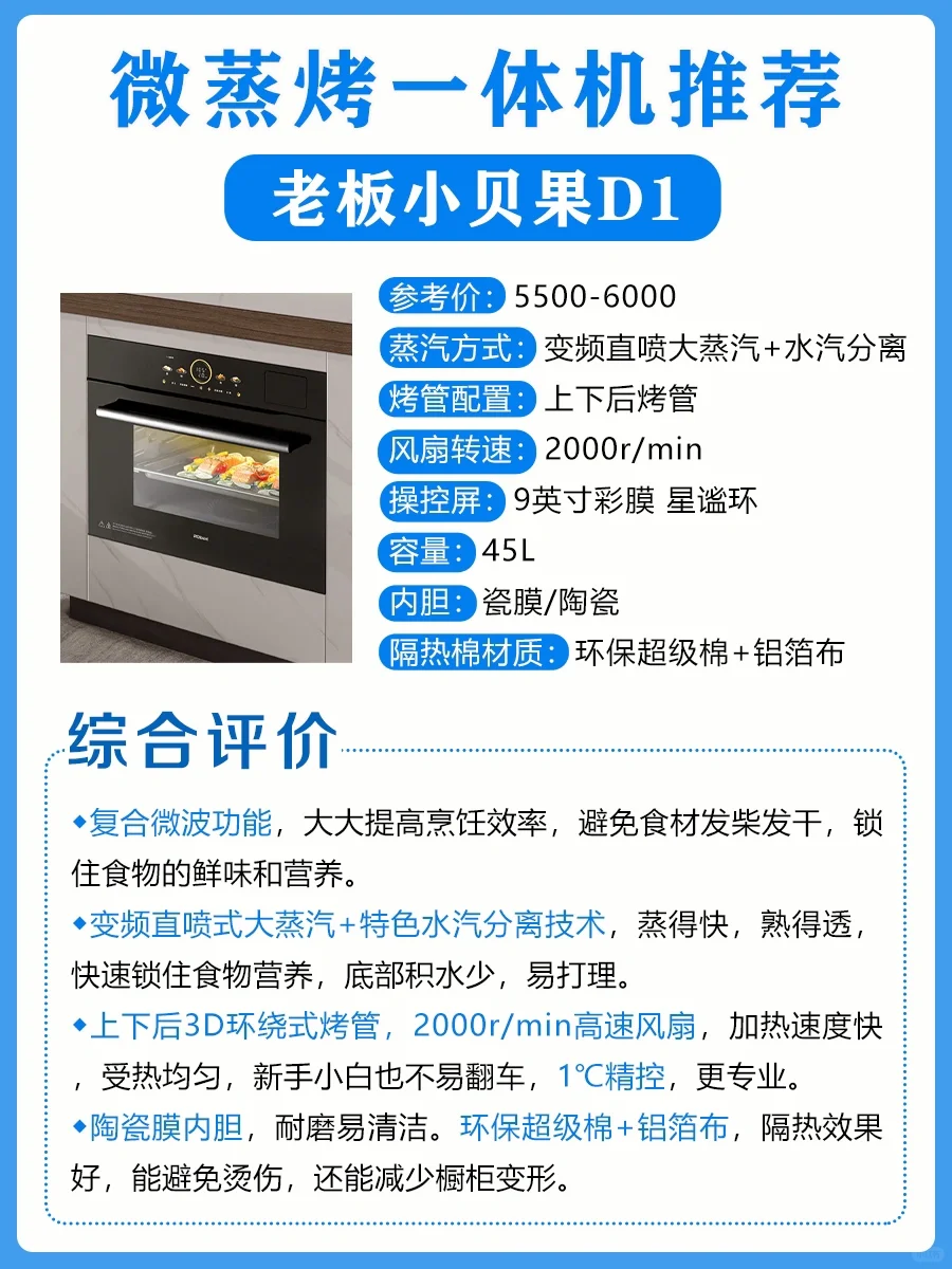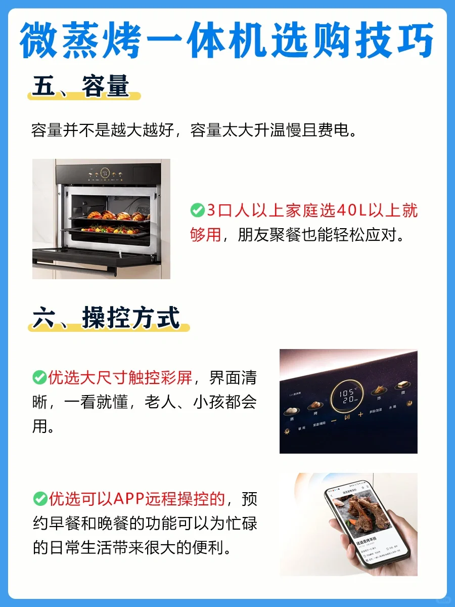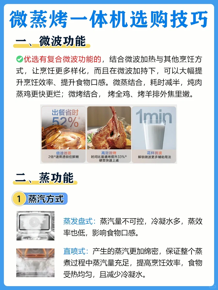 ✅优选有复合微波功能的,微波助力蒸烤模式,让烹饪更多样化。而且在微波加持下,可以大幅提升烹饪效率、提升食物口感。微蒸结合,耗时减半,炖肉蒸鸡更快更烂;微烤结合, 烤全鸡、烤羊排外焦里嫩。