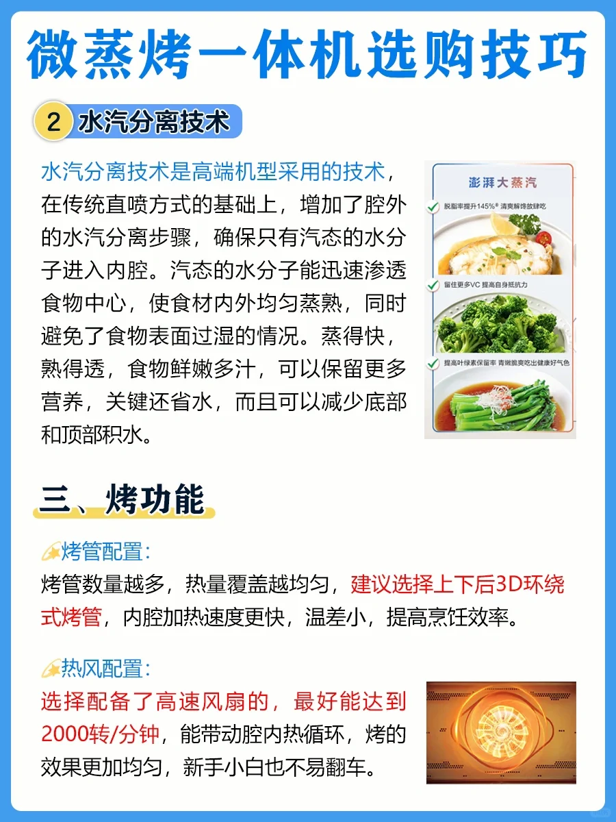 ✅选择配备了高速风扇的,最好能达到2000转/分钟,能带动腔内热循环,烤的效果更加均匀,新手小白也不易翻车。