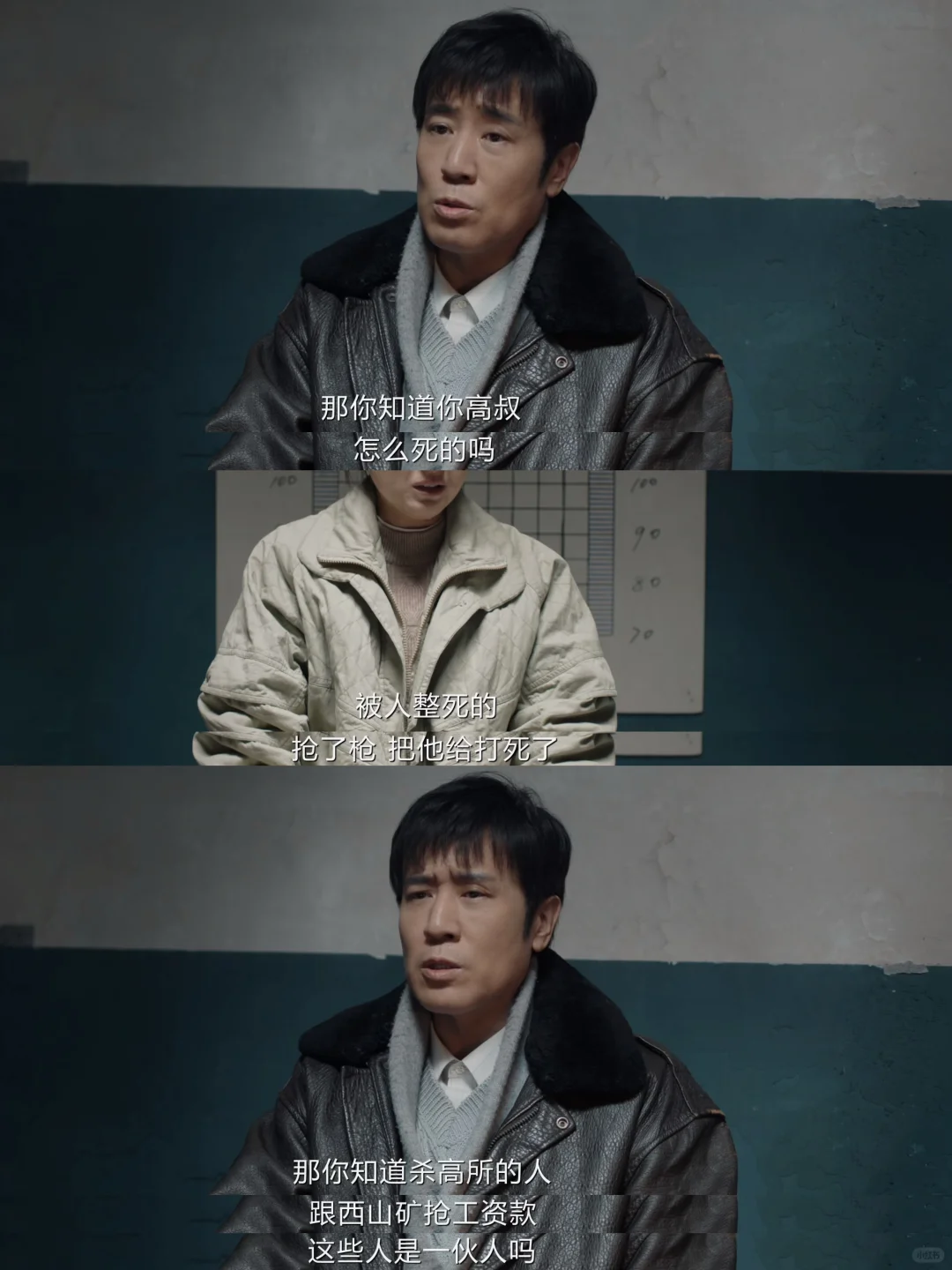 一整段都是朴素问答,你良心不疼吗、你不替你高叔觉得冤枉吗等等道德审判、情绪潜台词,全都埋在明面的问答下面。