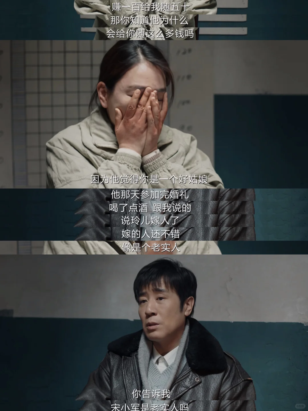 比如这段审讯,“你管我妈叫什么”“我在哪个单位工作”“大山子派出所你还跟谁熟”,真“灵魂”审判,在家常式的语言中一点点逼问出良心谴责,一点点勾勒出唏嘘的人世间浮世绘。