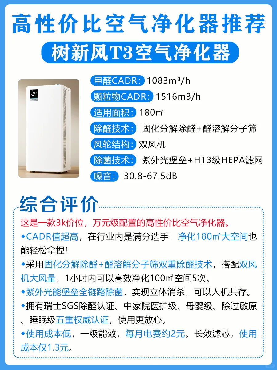 😎综合对比来看,更加推荐树新风T3空气净化器~