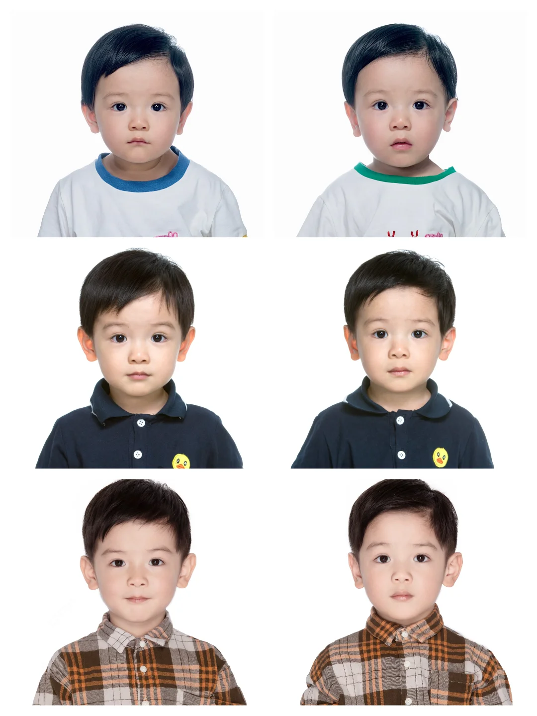 第八年了!!! 从一岁开始,每年拍一张证件照, 不知不觉就拍了八年了! 可可爱爱的小宝宝转眼都是二年级小孩哥了! *首图: 上面是6岁哥哥—>弟弟 下面是8岁哥哥—>弟弟 因为穿的服装一样,对比起来特别有意思😌 *图二图三就是刚拍的8岁证件照 *图四以后是历年证件照[大笑R] 同样左边哥哥右边弟弟