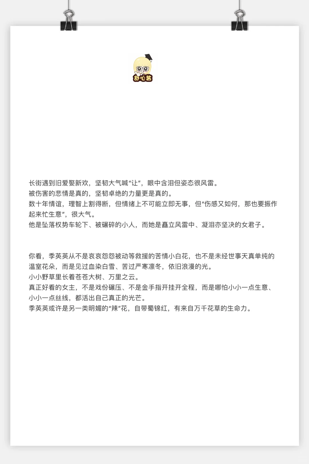 很喜欢季英英的有限聪明、有形作为、有韵担当