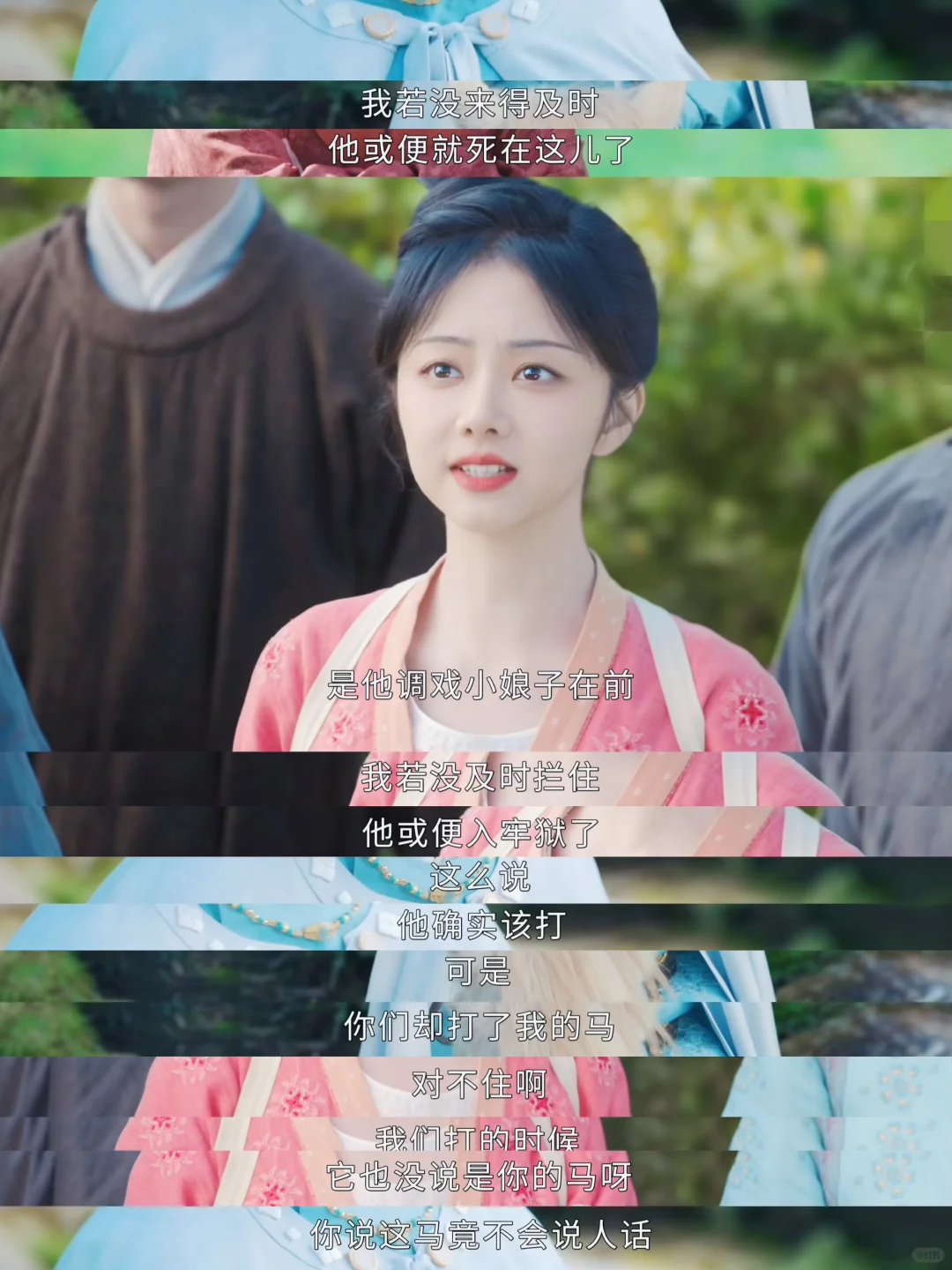 谭松韵 两次“动物说人话”,前一次讥讽“我们打的时候它也没说是你的马啊,谁知这马竟不会说人话”,是对“疑似纨绔朋友”惜马行径的反驳