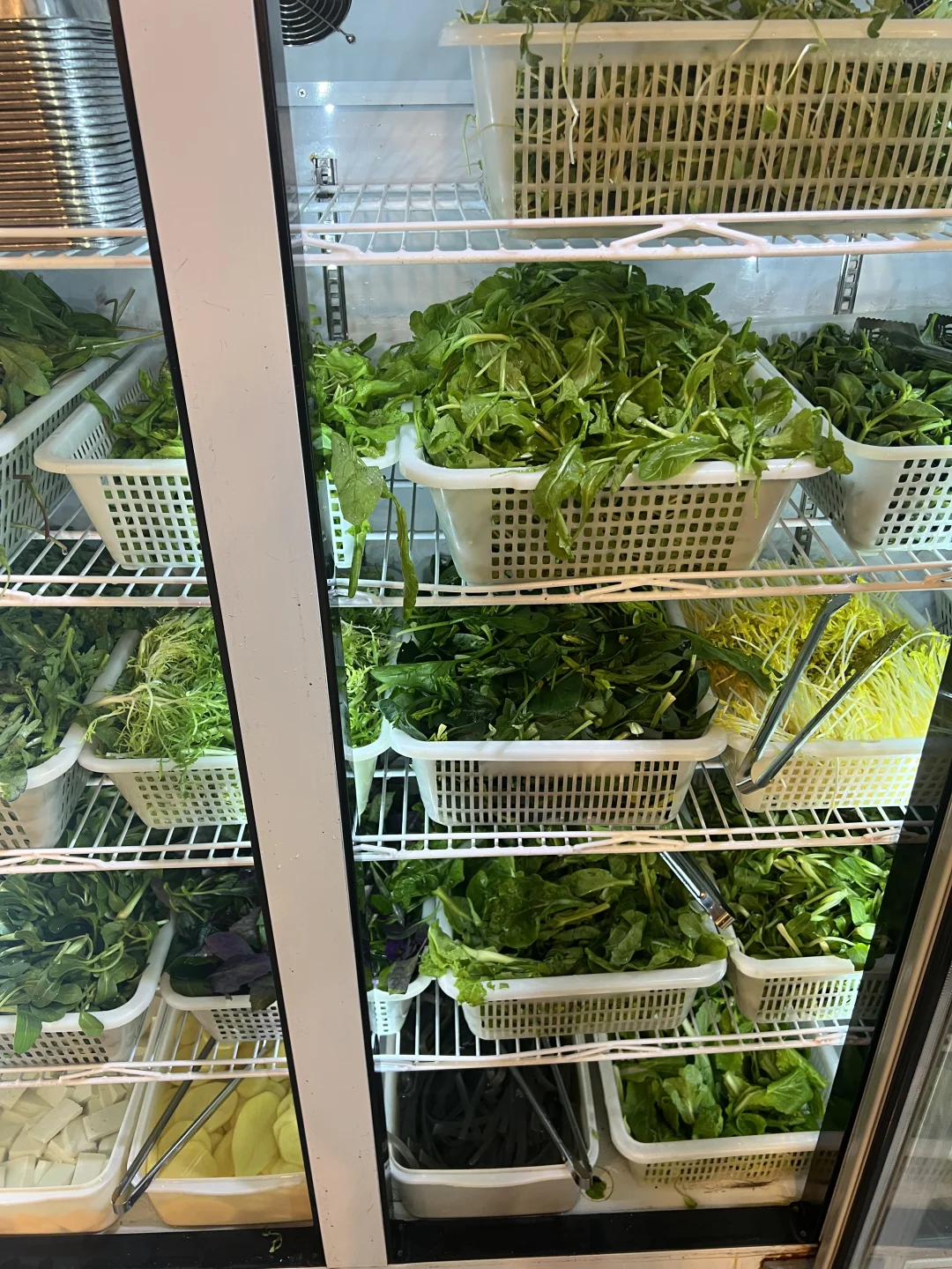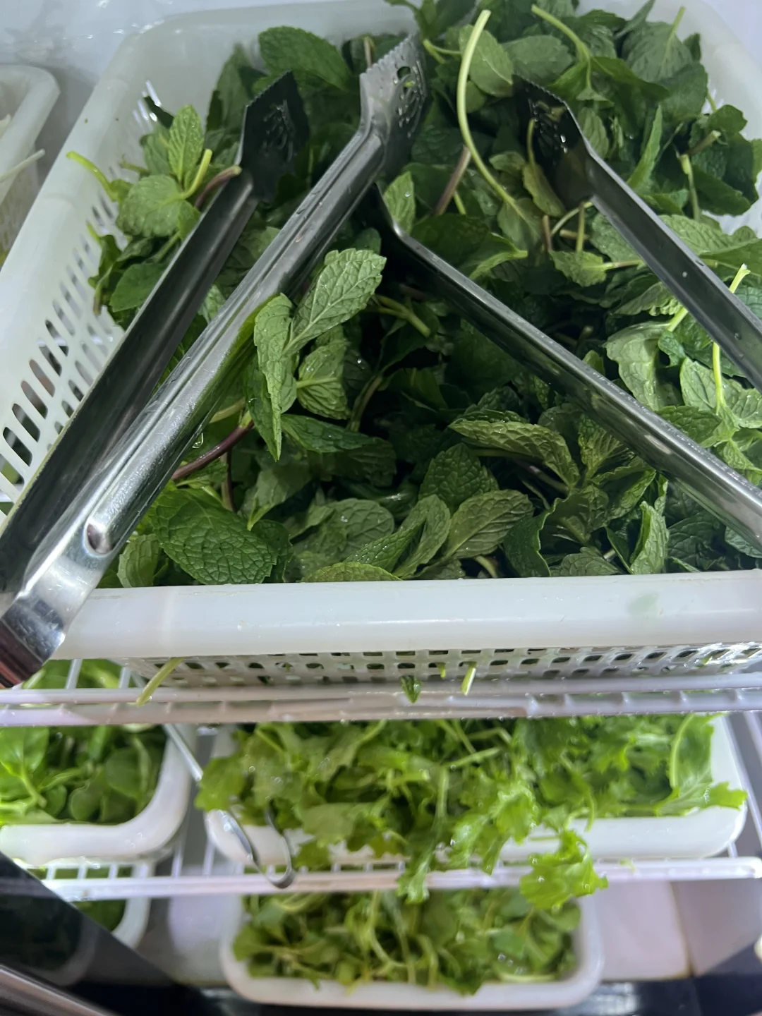 对了,吃火锅一柜子青菜免费的,竟然发现一筐子薄荷,薄荷哎,北方很少见当菜的,我只种过。