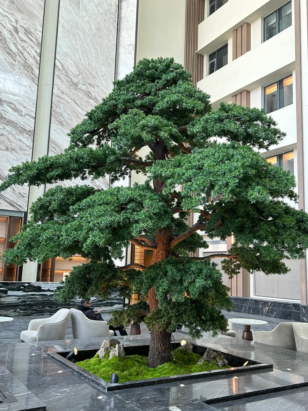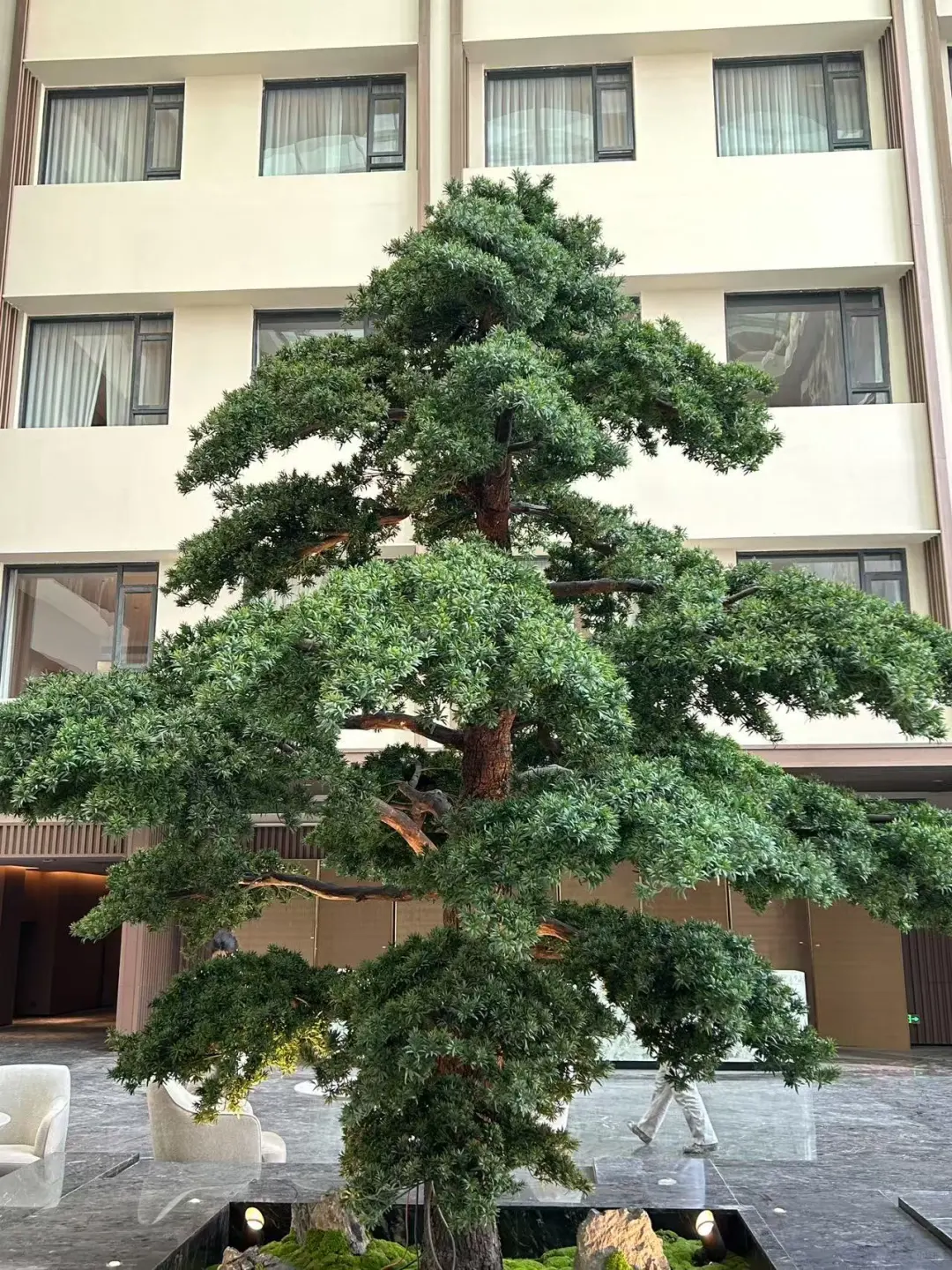 襄阳地区的一个高度5米长度4.8米的大型仿真罗汉松落地效果,现场效果更加震撼!欢迎大家打卡拍照