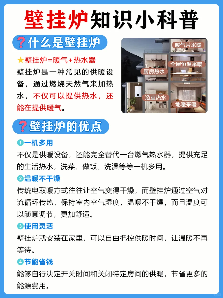 取暖器、空调存在取暖范围有限,制热不均匀,容易干燥不舒适,电费贵等问题,👉🏻越来越多人选择壁挂炉!