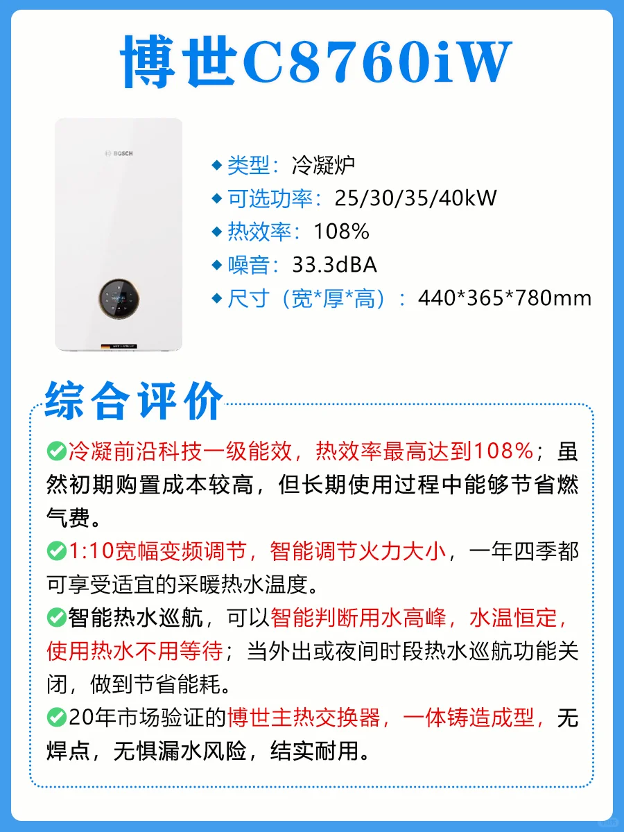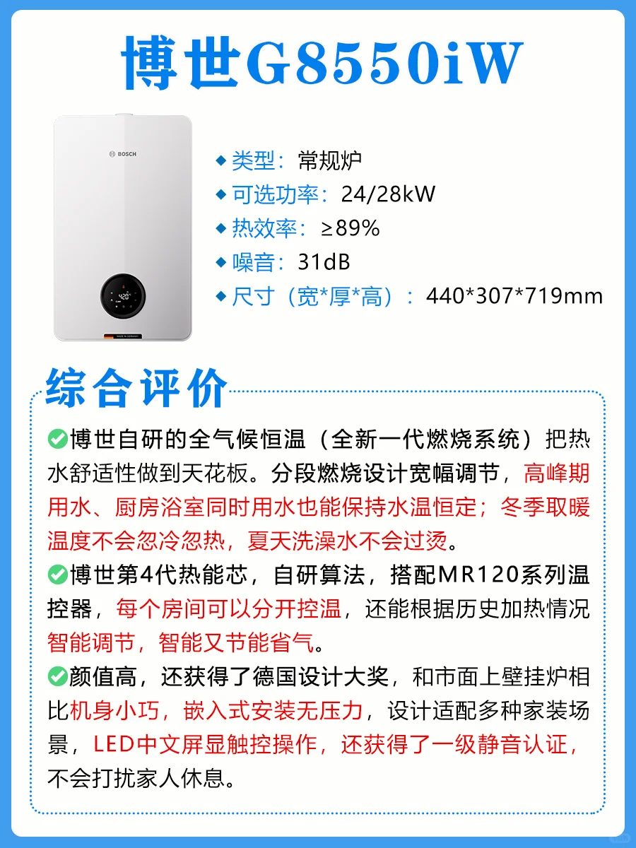 ✨给大家推荐两款高品质的壁挂炉:博世G8550iW(常规炉)、博世C8760iW(冷凝炉),拥有百年历史的德国大品牌售前售后都更有保障,具体介绍直接看图6-7,有计划入手壁挂炉的友友们一定要码住啦!