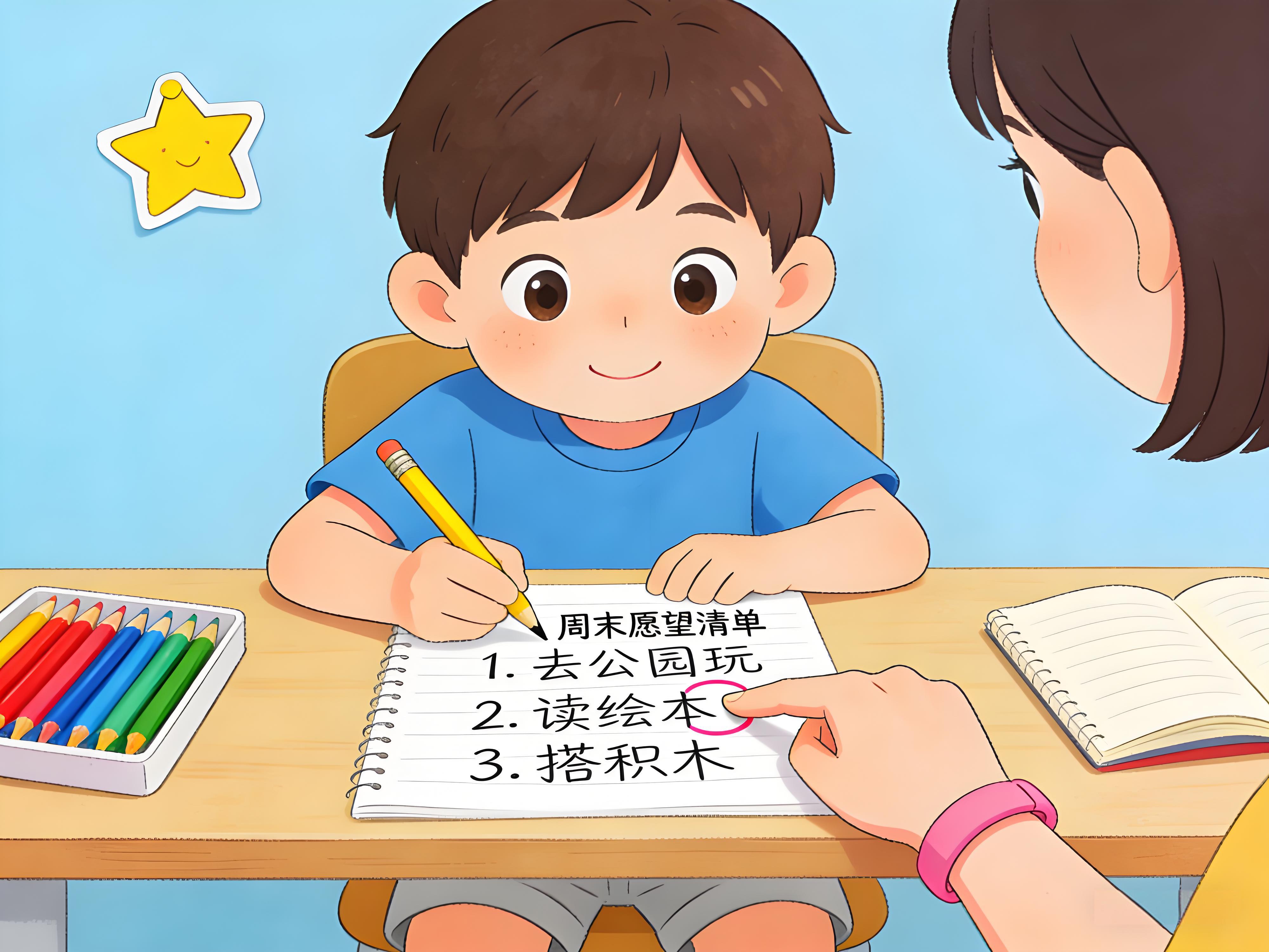 1.周末列“愿望清单”,学会优先级排序:让孩子把周末想做的事写下来(比如看动画片、去公园、玩玩具),然后一起筛选出3件最重要的事,按“先做重要的,再做喜欢的”顺序完成。慢慢让他明白“合理安排时间,才能玩得更开心”。