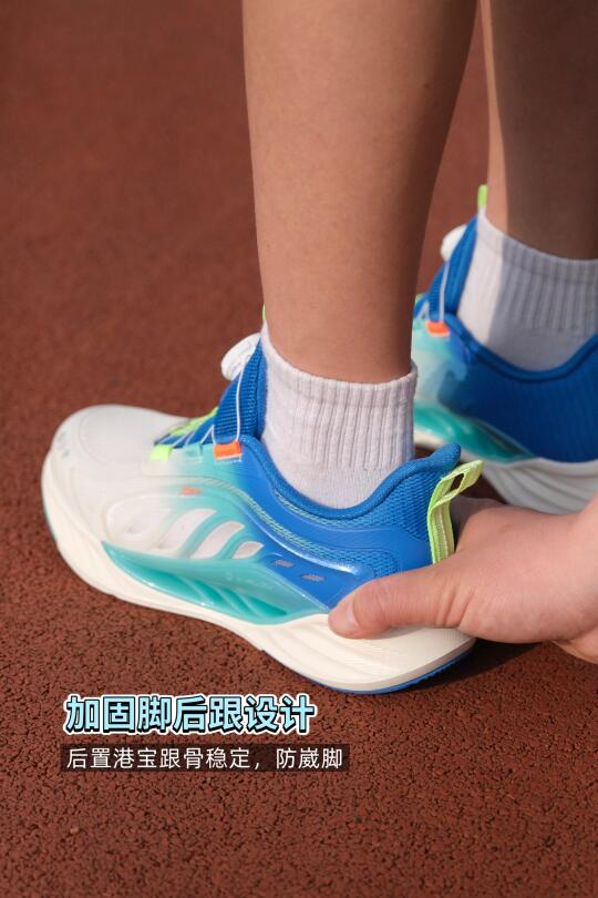而且,这双鞋对孩子足部的保护很到位,中足tpu支撑,预防足弓塌陷,后置港宝稳定跟骨,孩子跑跑跳跳时更安全,不容易崴脚。旋钮设计也进行了升级,轻轻按压,穿脱轻松,孩子自己就能搞定。