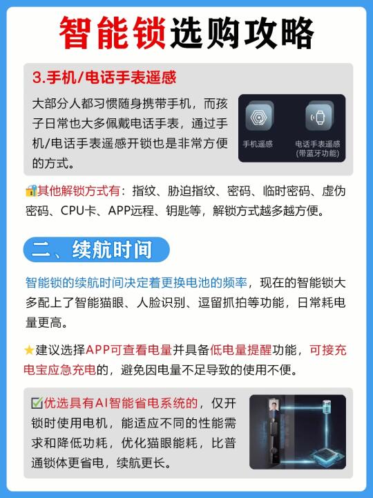 ✅优选具有AI智能省电系统的,比普通锁体更省电,续航更长。