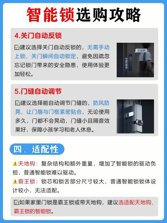 家里门锁是霸王锁或带天地钩的,选择适配度高的。