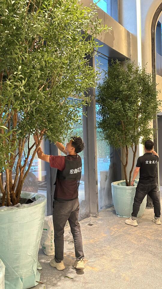 深圳沙河高尔夫球俱乐部大堂绿植安装施工中!