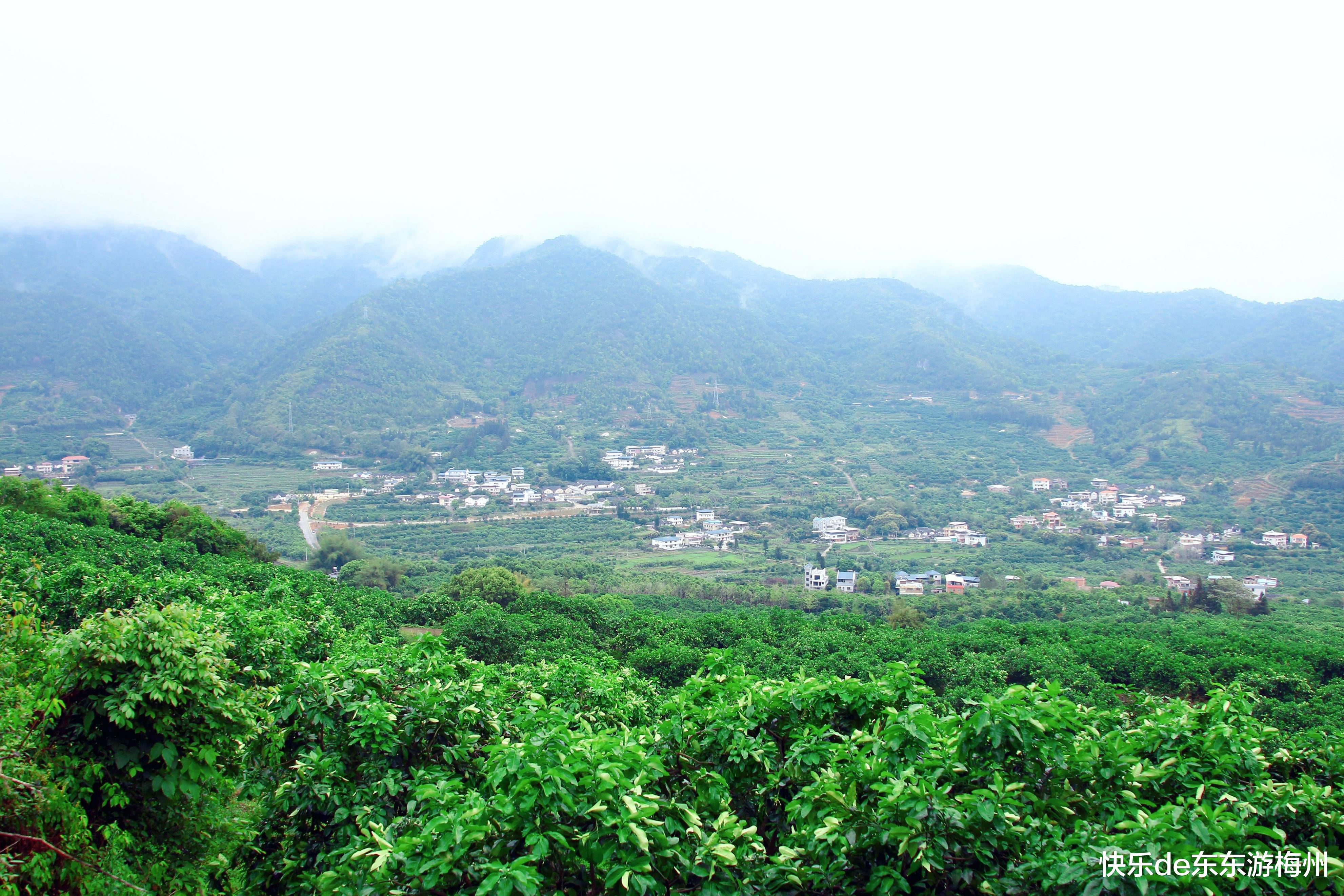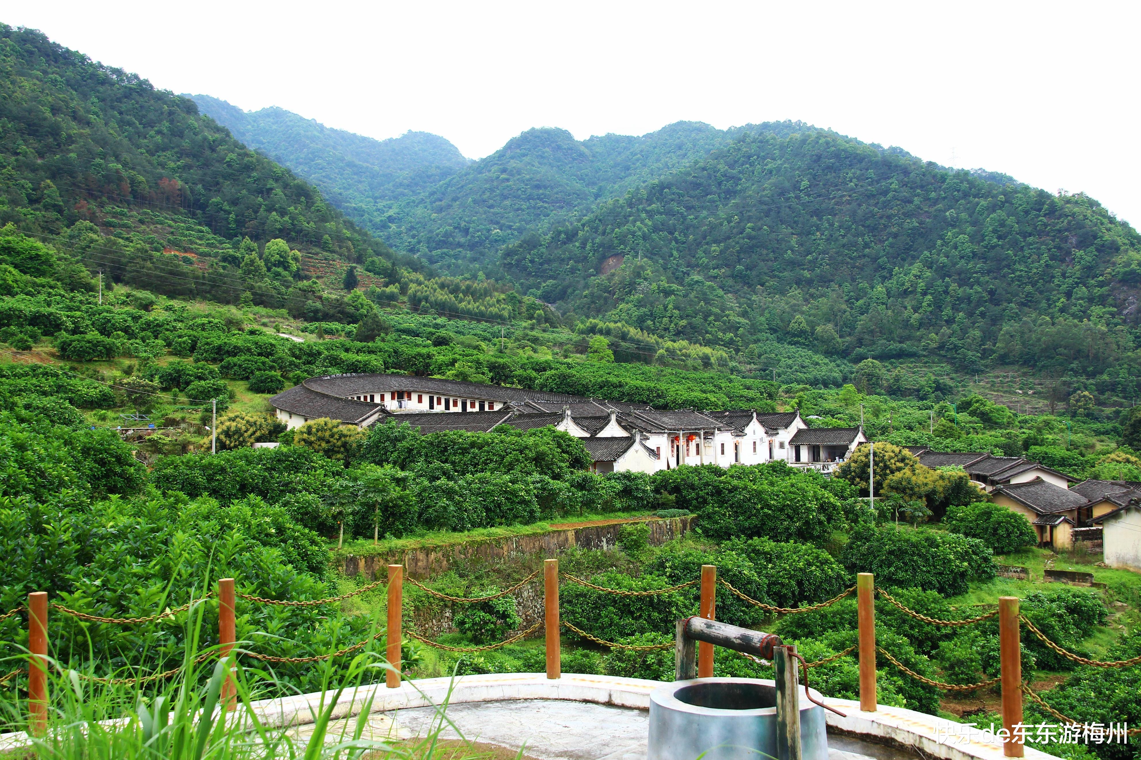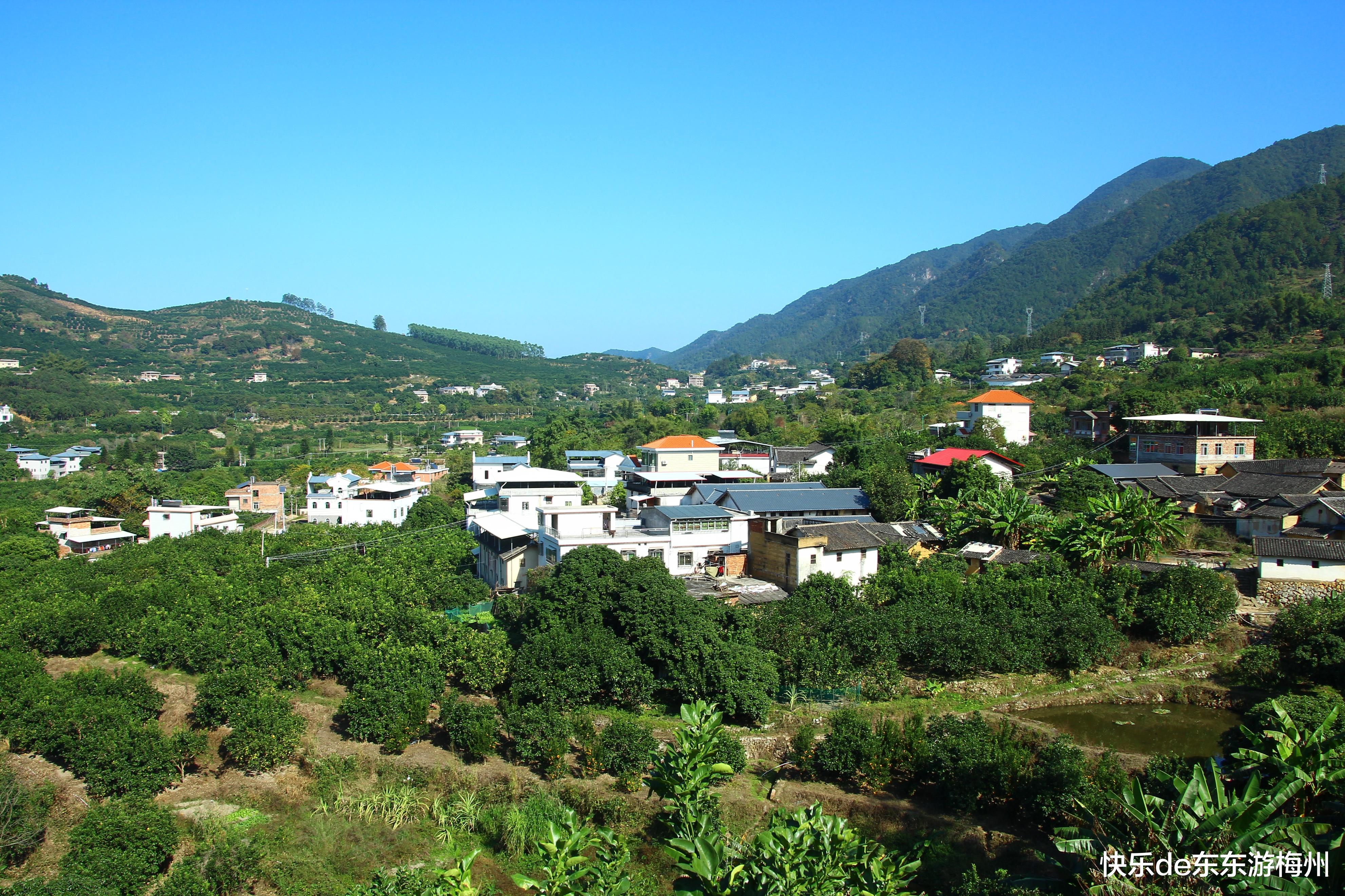 梅县区雁洋镇的南福村是一个四面环山的大山村,村民的房屋依山而建,高低错落,与得天独厚的自然环境浑然一体,组成了一幅天然的山水田园画。富含负氧离子的空气,让游客在园内感觉精神百倍,难怪梅州著名的国家AAAA级旅游景区雁山湖(原名“雁鸣湖”)会选在南福村的金柚公园旁边。