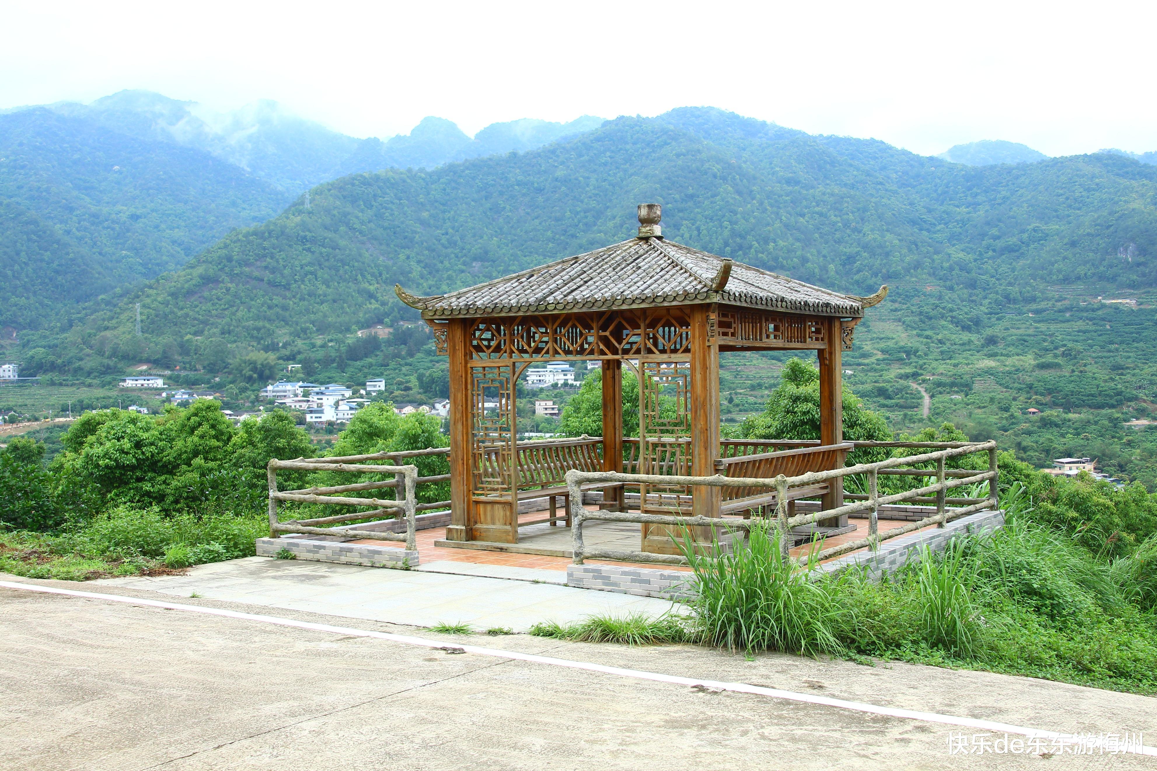 观景亭里观赏山村美景