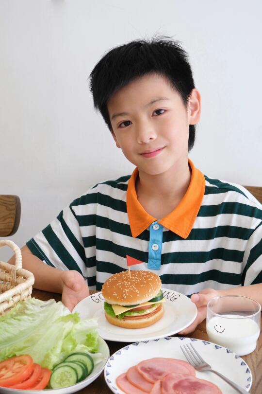 最后弟弟举着歪歪扭扭的汉堡宣布: