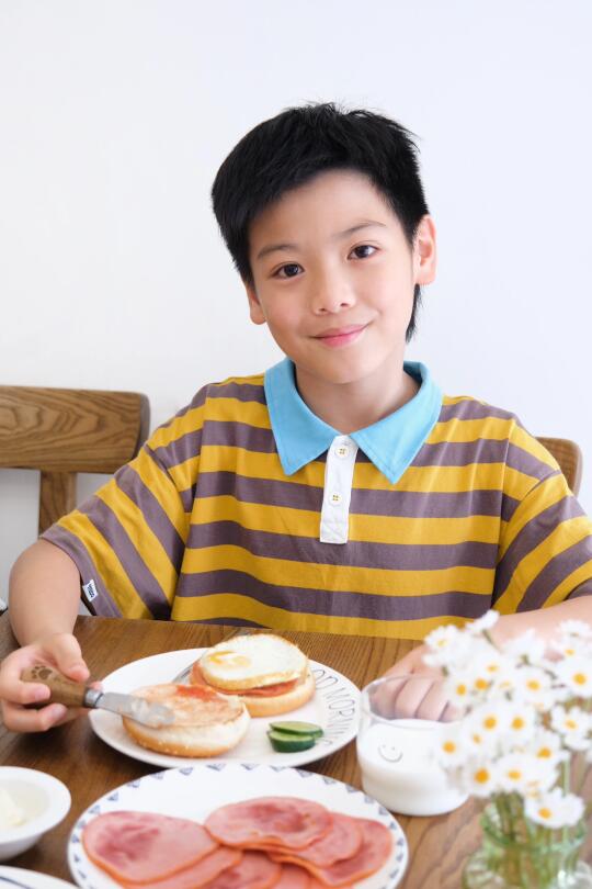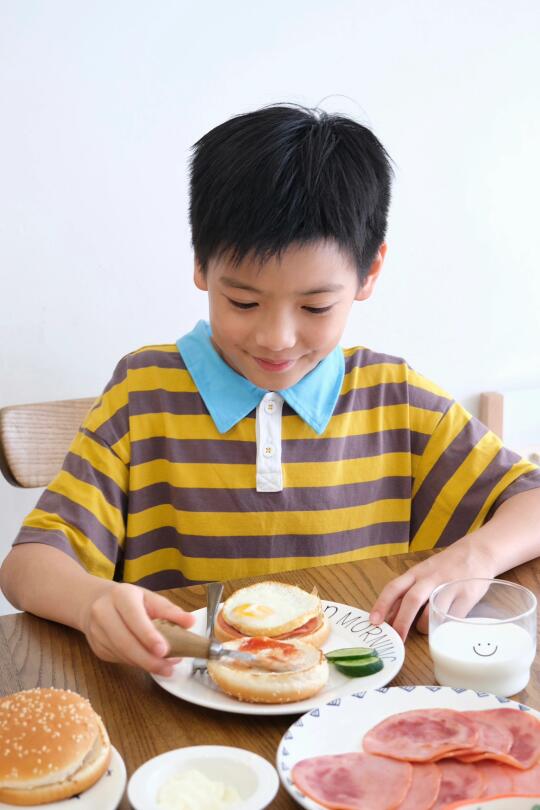 弟弟化身“黄金甲骑士”为我已经煎好的火腿片披上芝士「战袍」