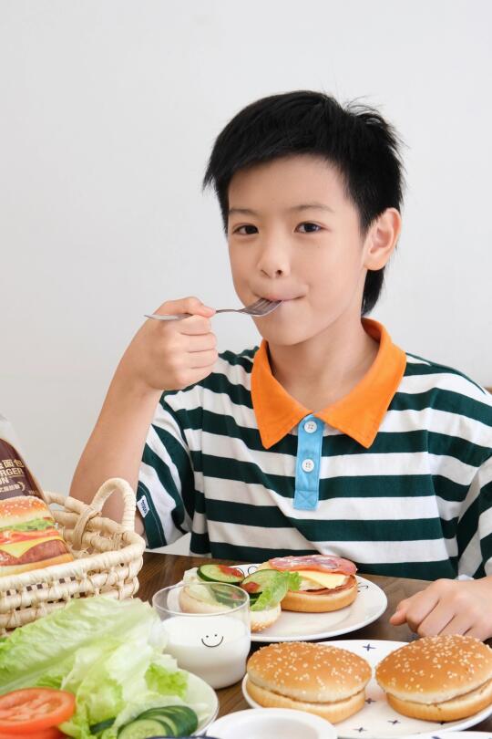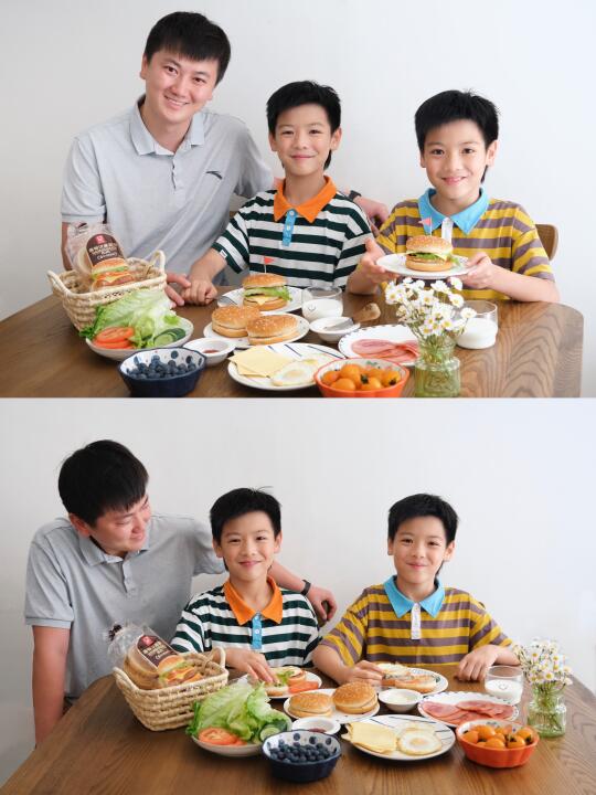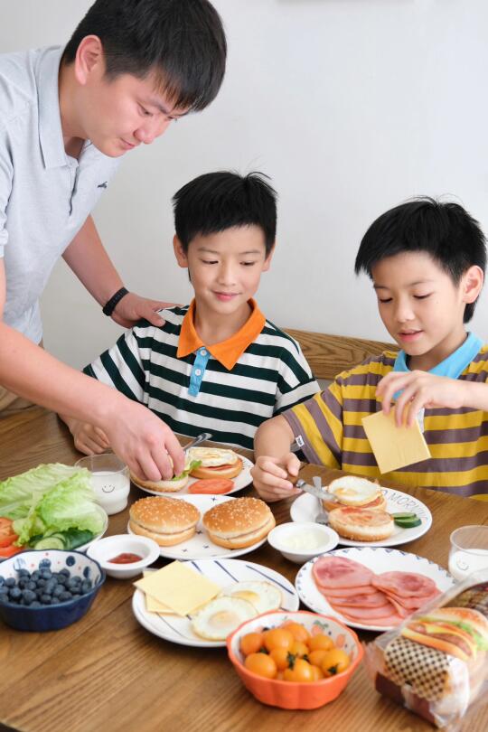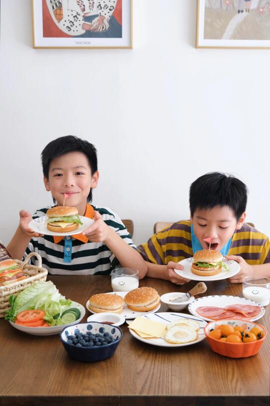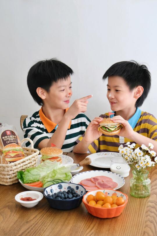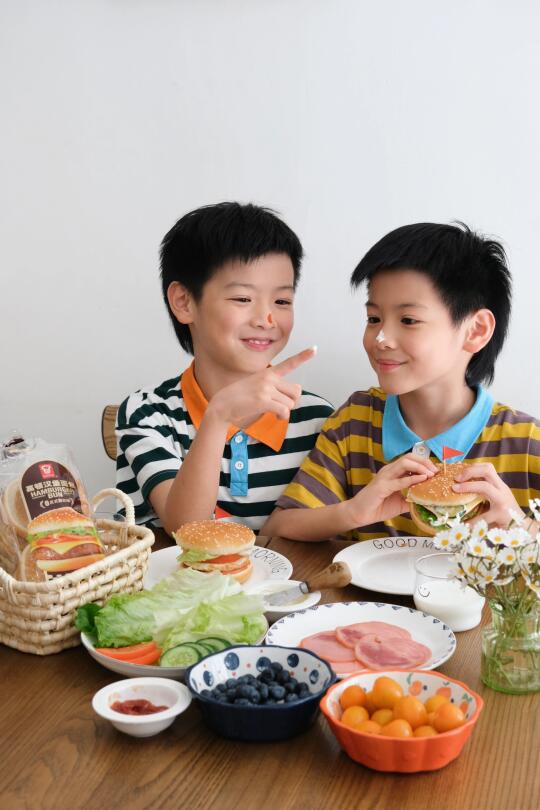 妈妈,妈妈!这个面包香香的!我们也想做汉堡好不好?