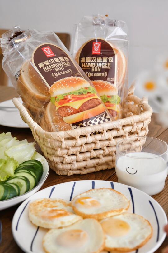 松软Q弹的嘉顿汉堡面包,精选优质原料0反式脂肪酸,叠各种馅料不软榻,适合DIY各种口味,让宝贝吃得开心妈妈更放心!