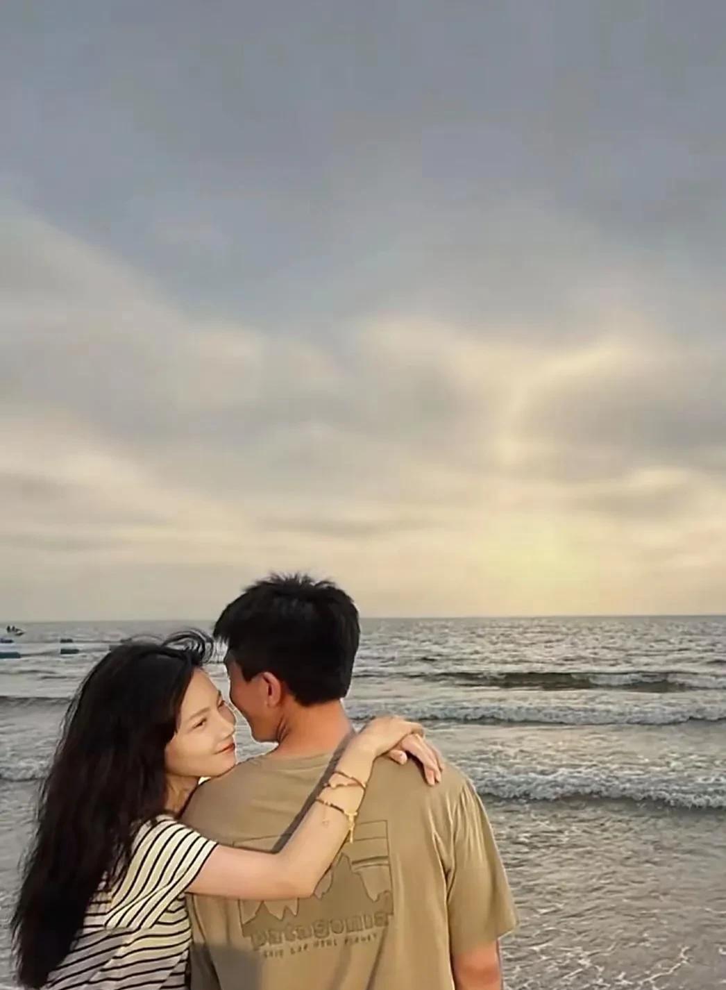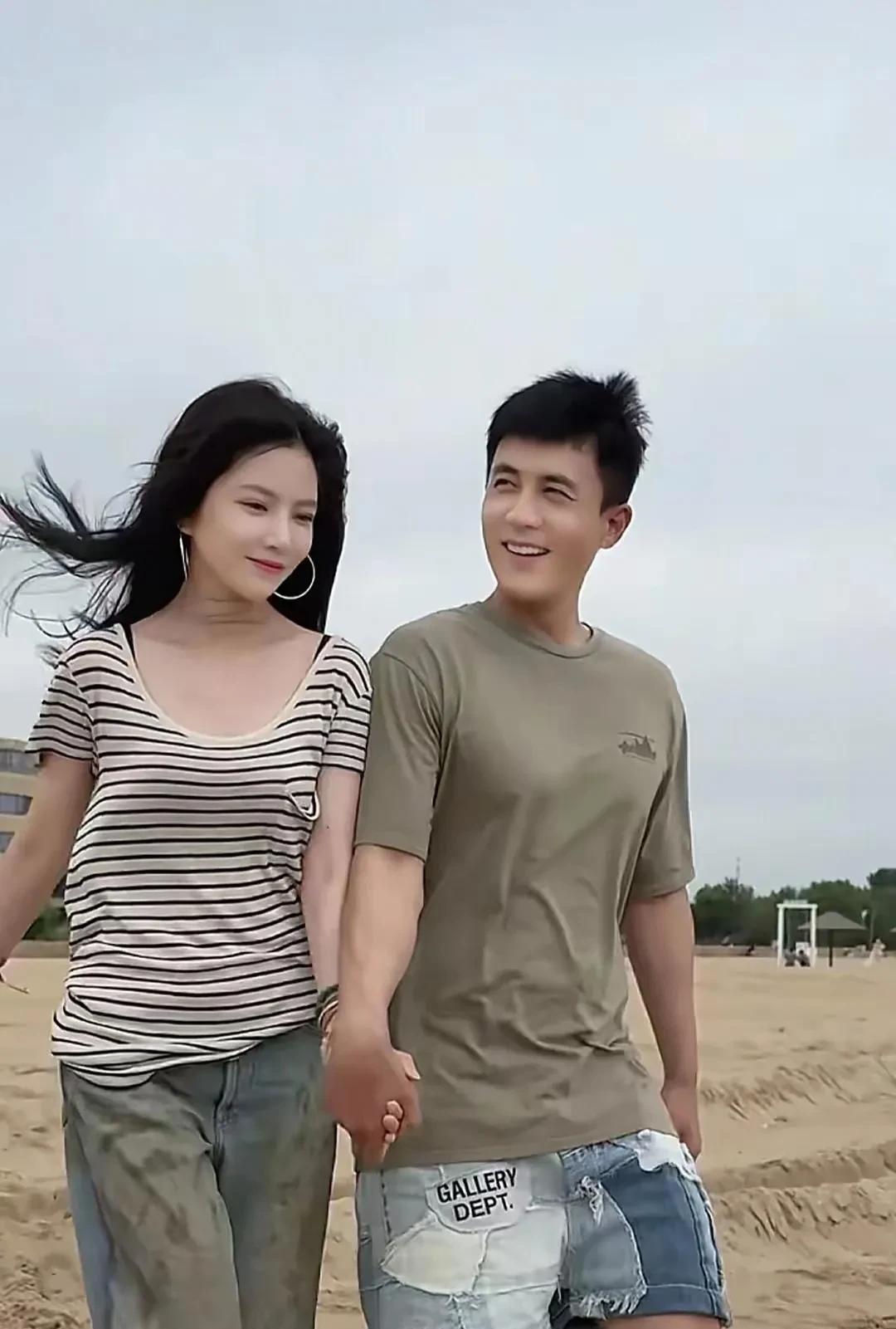 王灿又晒幸福了,与44岁的杜淳海边手牵手游玩,两人肤色明显