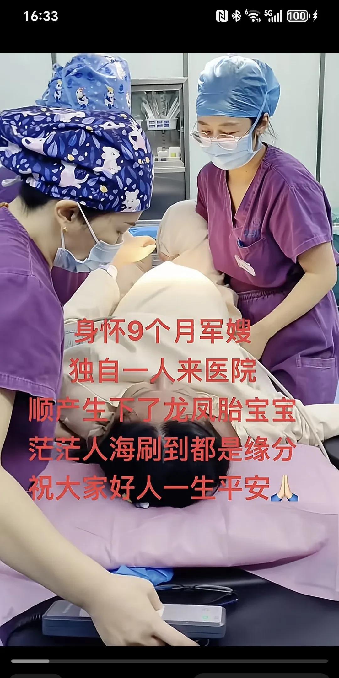 怀孕九个月的军嫂,独自一人来医院,顺产生下了龙凤胎宝宝,茫茫人海刷到都是缘分,祝全家好人一生平安。 军嫂确实不容易,很多军嫂怀娃生娃老公不在身边的,那种痛没老公陪伴的心情难表,给坚强独立自信的女孩。