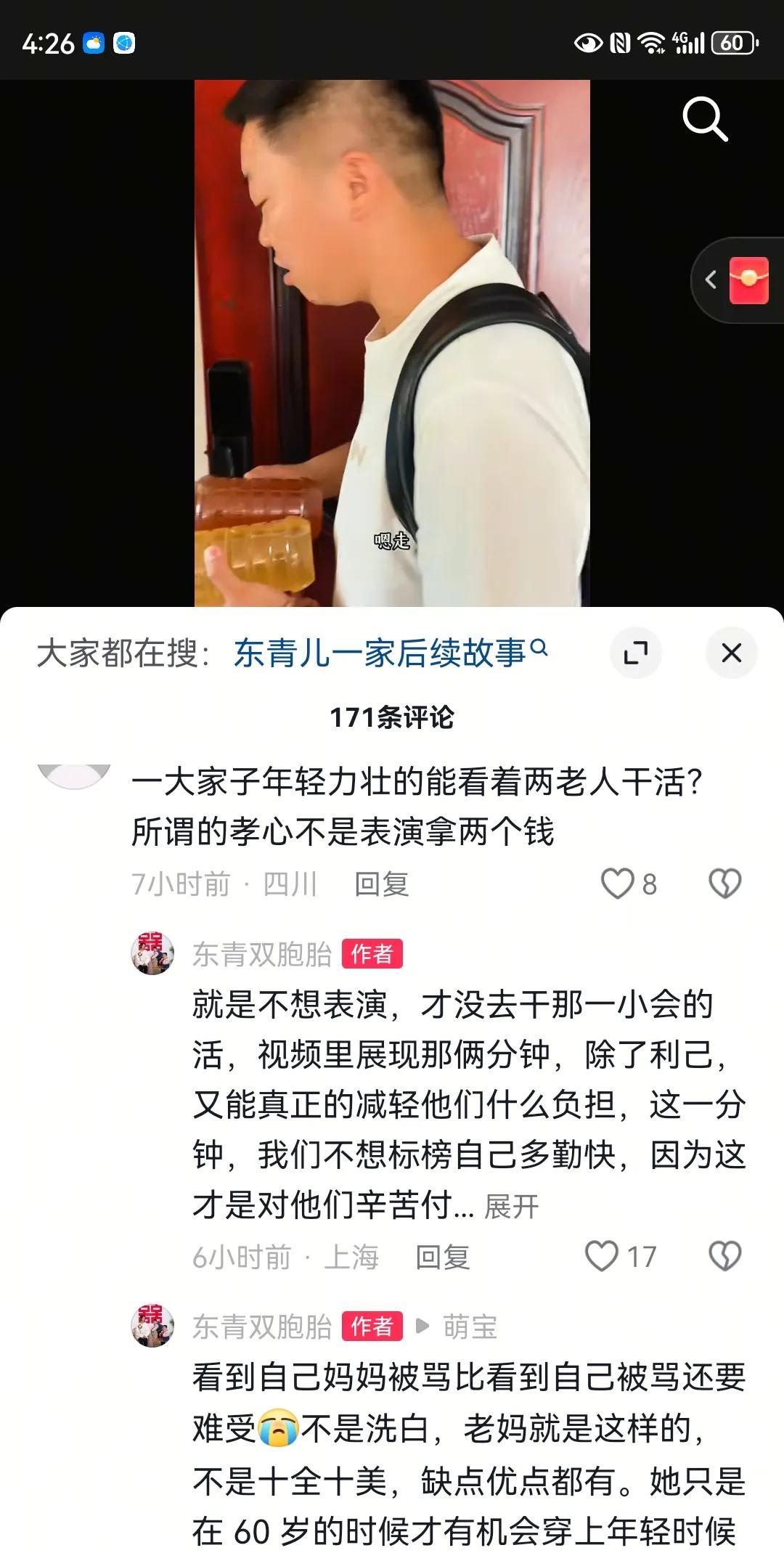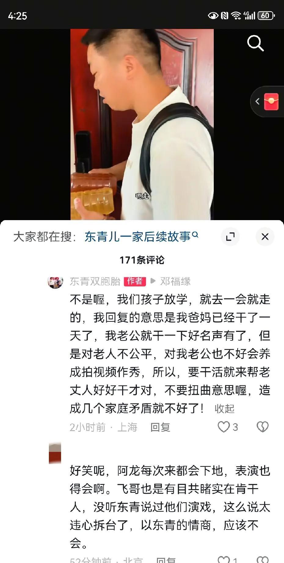 二姐可能怎么也没想到,回趟娘家拍个视频,要满世界去灭火。 二姐带着小老公和孩子,买了一个西瓜一串烂香蕉去娘家看看,顺便告诉她们要离开老人的帮衬去苏州生活。去时,俩老人在田里干活,弟弟弟媳穿得人模人样的在家吹空调。他俩带着孩子,也是穿得漂漂亮亮去田里逛了一圈,像领导视察工作一样,然后就走了。 评论区里炸锅了,骂她老公就一张嘴甜,不如龙哥飞哥会干实事。骂弟弟弟媳在家只吃饭不干活,年轻享受老人辛苦,看不下去。二姐赶紧回复:干也是那一两分钟,不想去表演,除了利己,抢老人的功劳,没别的用处。网友又质疑是在内涵龙哥和飞哥之前干活是作秀。二姐又是一通解释,给累得呀! 很多网友表示不想看见她老公,看到就反感,现在粉丝的风评来个180o大转弯,觉得仨老挑一比较,就这个老二嫁亏了,这男人狗屁不是,连绣花枕头都算不上。二姐可能没想到,她辛苦立的好老公人设,才刚两月就这样了,所以呀,站得高必定摔得惨!