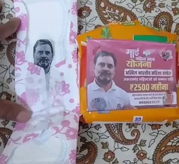 莫迪老仙这次是遇上对手了,在印度卡哈尔邦举行的选举中,老仙的竞争对手想取得女性同胞的支持,就将领导人的头像印在卫生巾包装袋上,免费发放。 这原本是一个很不错的想法,可收到卫生巾的女人回家之后却不敢用。原来他们不光在包装袋上印了领导人的头像,连卫生巾吸棉面上也印着领导人的头像,这么邪恶感十足的事情,让人怎么用的下去,这是正儿八经的照脸糊啊。 这么天才的想法,也足以和老仙掰掰手腕。