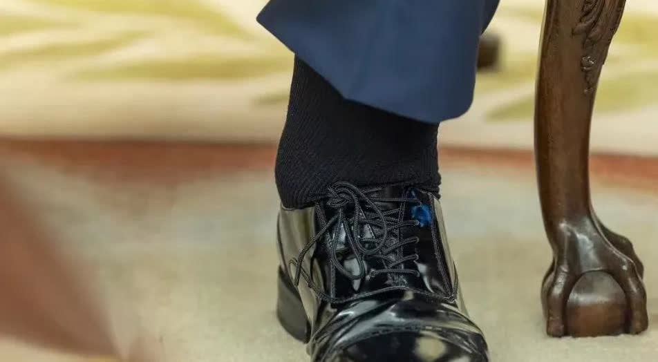 特朗普脚🦶完全不对阿,感觉脚腕是硬塞进皮鞋👞的。“男人脚肿怕不祥征兆!”