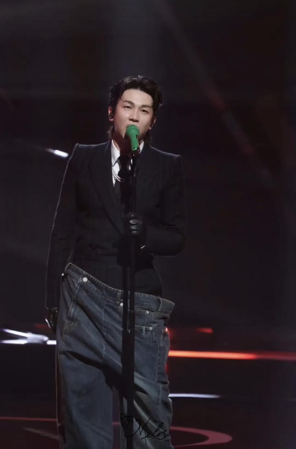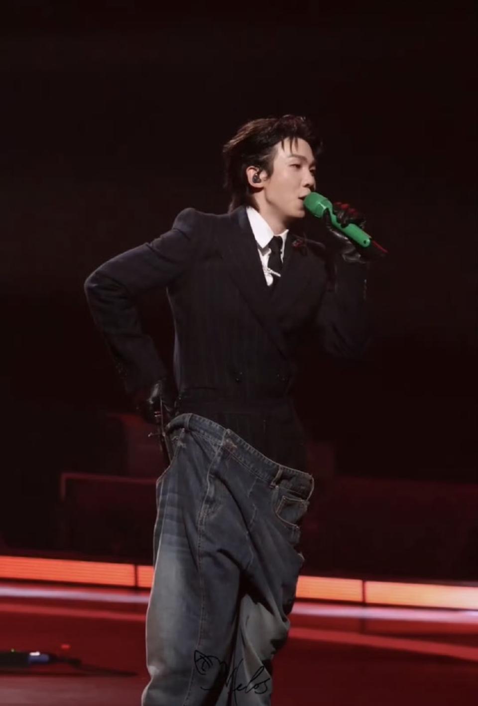 2025年7月20日,白举纲在舞台上的表演令人眼前一亮,一套“XXXXXL牛仔裤”造型引发热烈讨论。 他上身穿黑色丝绒西装,搭配精致领结,利落的剪裁凸显高级质感,塑造出优雅绅士形象;下身却穿着超夸张的XXXXXL尺码牛仔裤,裤管宽松得像裙摆,随着舞蹈动作肆意翻飞。这种上下身的强烈反差,与歌曲《垃圾国国王》的反叛内核相呼应,通过荒诞造型解构世俗规则,大大增强了舞台叙事张力。观众们普遍认为,这身造型虽不适合日常穿着,却完美服务于表演主题,设计师借此暗讽消费社会的符号过剩,将服装变成了艺术表达的独特工具。#白举纲穿搭#
