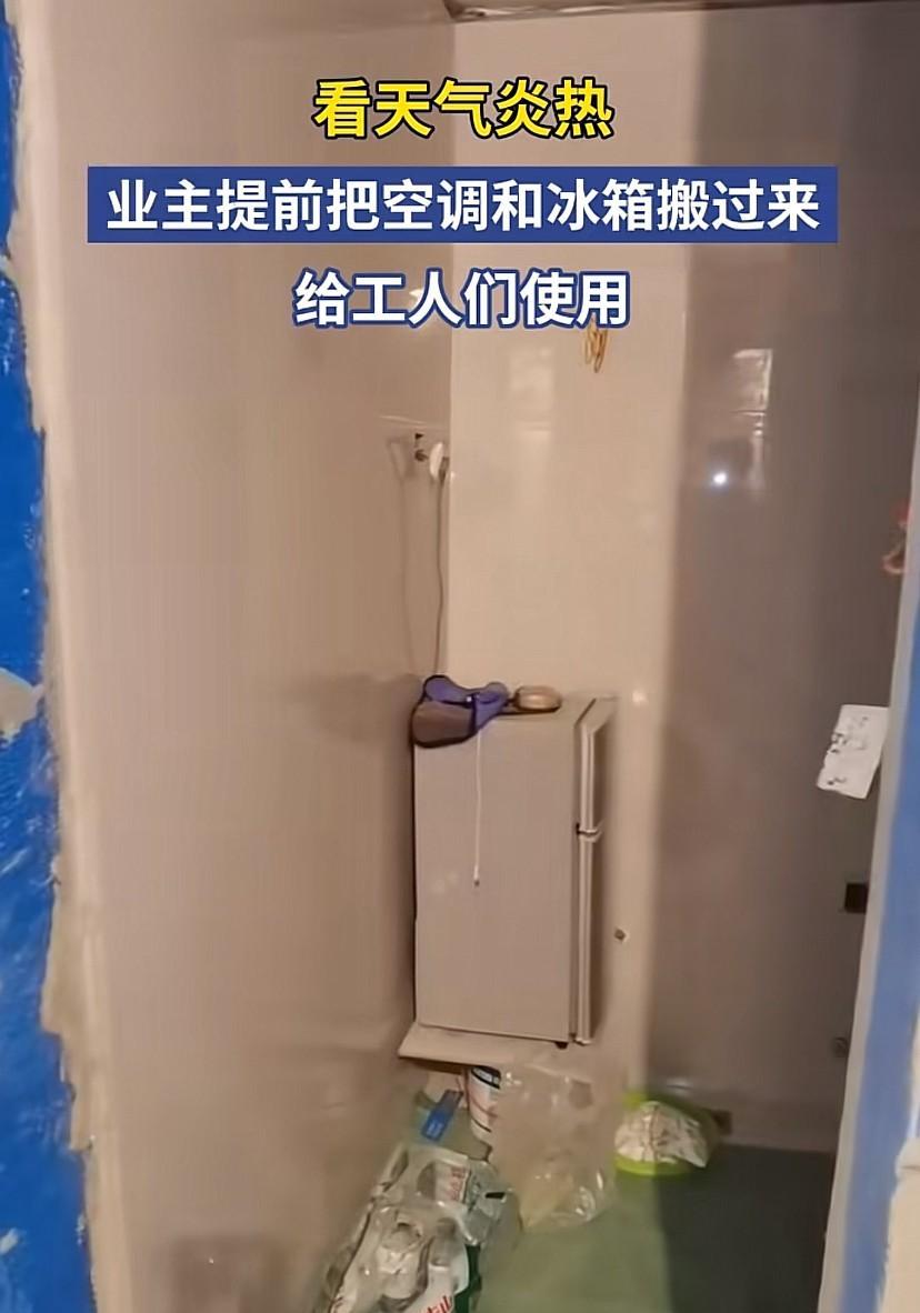 这业主真良心!房子刚开始装修就新买了一个空调和冰箱搬过来了,业主说天气太炎热怕装