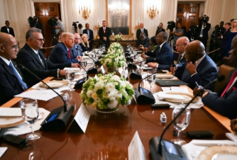 7月9日,特朗普在白宫会见了5个非洲国家的领导人,他们分别是加蓬、几内亚比绍、利比里亚、毛里塔和塞内加尔。 这5个国家都属于名不见经传的小国家,特朗普连名字都念得有些结巴,更不认识那些领导人。 那又为什么要见他们?自然是有“求”于他们。 在白宫的午餐会上,这些国家政要坐在餐桌上,面前是餐具,盘中却光洁如新,根本没有食物,倒是有一些文件让他们当“开胃菜”。