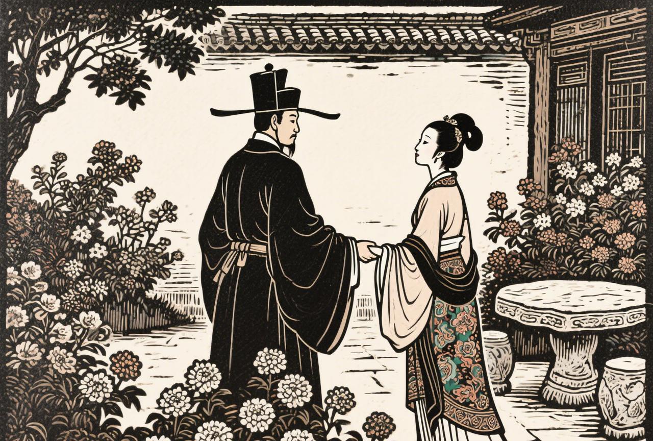 县令的妻子死了,他叫来一些女工缝制丧服,女工中有个妇人,容貌温婉秀丽,姿色绝伦,